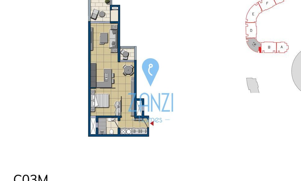 This 6th floor APARTMENT’s 66sqm floor area features a kitchen, living and dining area leading out onto a 9sqm front terrace enjoying town views, one bedroom, utility/laundry room and the main bathroom.