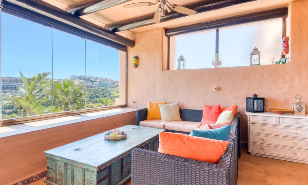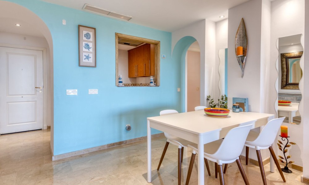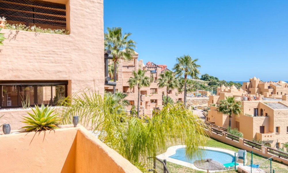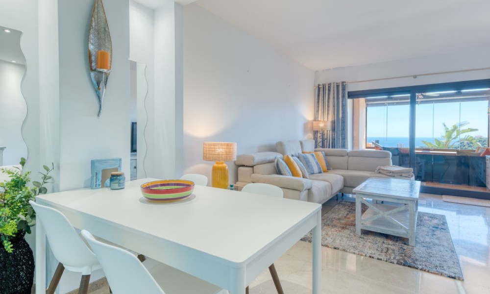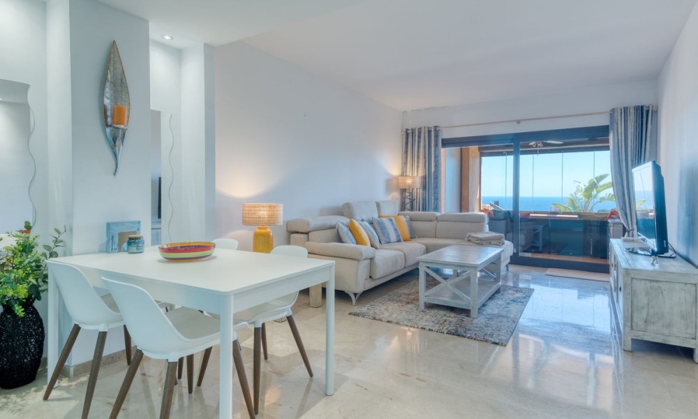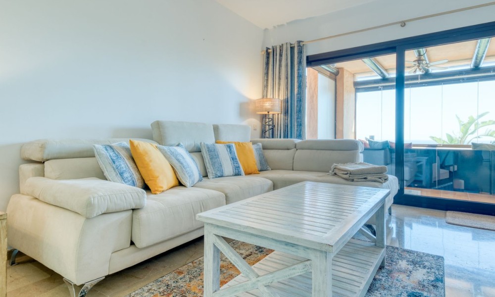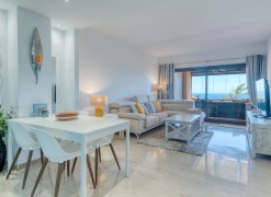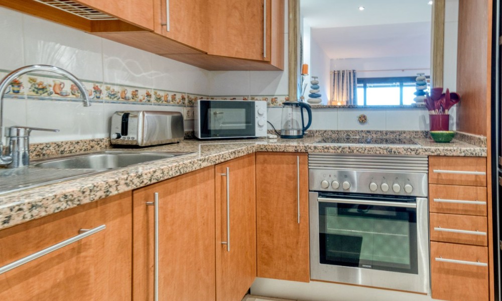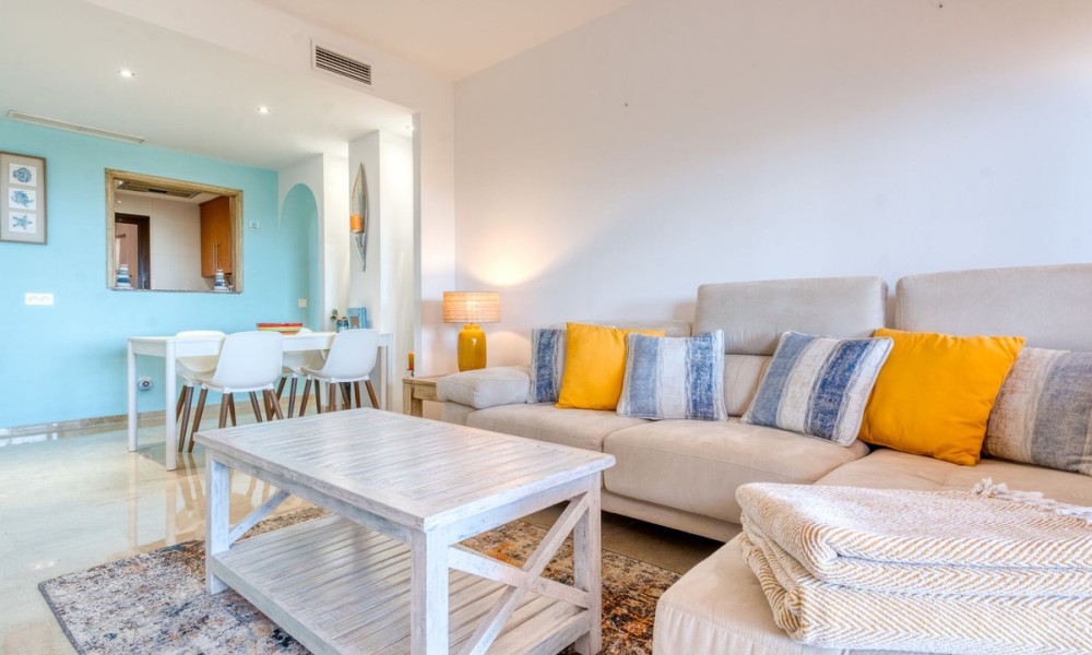 Ground Floor Garden Apartment | Pool Access | Near Beach & MarinaRelax and unwind in this stylish 2-bedroom ground floor apartment, perfectly designed for effortless holiday living on the Costa del Sol.Step into a bright, open-plan living space that flows directly onto a spacious covered terrace—ideal for morning coffee, outdoor dining, or evening drinks. From here, a private gate leads straight onto lush communal gardens and pool areas, creating a seamless indoor-outdoor experience guests love.The apartment features two comfortable double bedrooms with built-in wardrobes. The master bedroom includes an en suite bathroom and direct terrace access, while a second modern bathroom serves the guest bedroom.