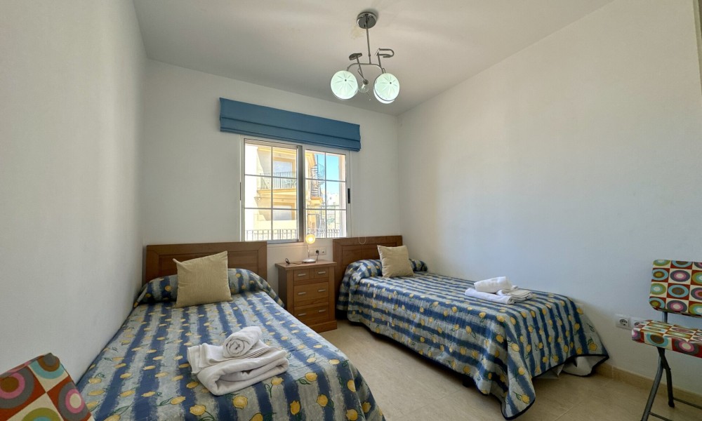 Relax amidst the beauty of the shared swimming pool, a refreshing oasis just steps away from your doorstep.Discover endless entertainment possibilities during your stay, from world-class golf courses including Desert Springs, Valle Des Este, and Aguillas, to the vibrant nightlife of Palomares Vera Playa Garrucha and Mojacar. Families will delight in the plethora of swimming pools within the resort, as well as 17km of pristine beaches, water parks, go-karting, and the enchanting mini Hollywood Studios at the Tabernas Desert.Don’t miss the opportunity to explore the romantic white village of Old Mojacar, perched high on the nearby hilltop, adding a touch of magic to your coastal getaway.Escape to paradise and make unforgettable memories in this exceptional beachfront retreat. Contact us now to secure your dream holiday!Property Details:- ️ 2 Bedrooms, 2 Bathrooms- October to June Rental Period- 4-Star Luxury Ground Floor Apartment- 55″ Flat Screen TV with UK & Spanish Channels- ️ Fully Equipped Kitchen & Dining Area- ♂️ Shared Swimming Pool (Unheated)- ️ Tranquil Terrace with Sea and Mountain ViewsNearby Attractions:- ⛳ Top Golf Courses: Desert Springs, Valle Des Este, Aguillas- Vibrant Nightlife: Palomares Vera Playa Garrucha, Mojacar- ️ Pristine Beaches: 17km of Unspoiled Coastline- Water Parks, Go-Karting, Mini Hollywood StudiosEmbark on your seaside adventure today!