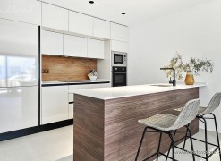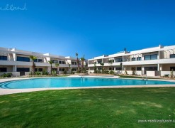 For an additional price it is possible to build a pool in the garden of the ground floor apartments, or install a jacuzzi on the solarium of the top floor apartments.The community areas offer a Mediterranean feel, with gardens surrounding a large pool for adults and children. To promote ‘sustainable living’ the garden areas will be planted with local plants and palm trees, reducing the water consumption. There is also outdoor fitness equipment available to residents, and an underground parking garage.The apartments have a minimalist design and include ducted A/C, underfloor heating in the bathrooms, fitted wardrobes, electric blinds, and a parking space.