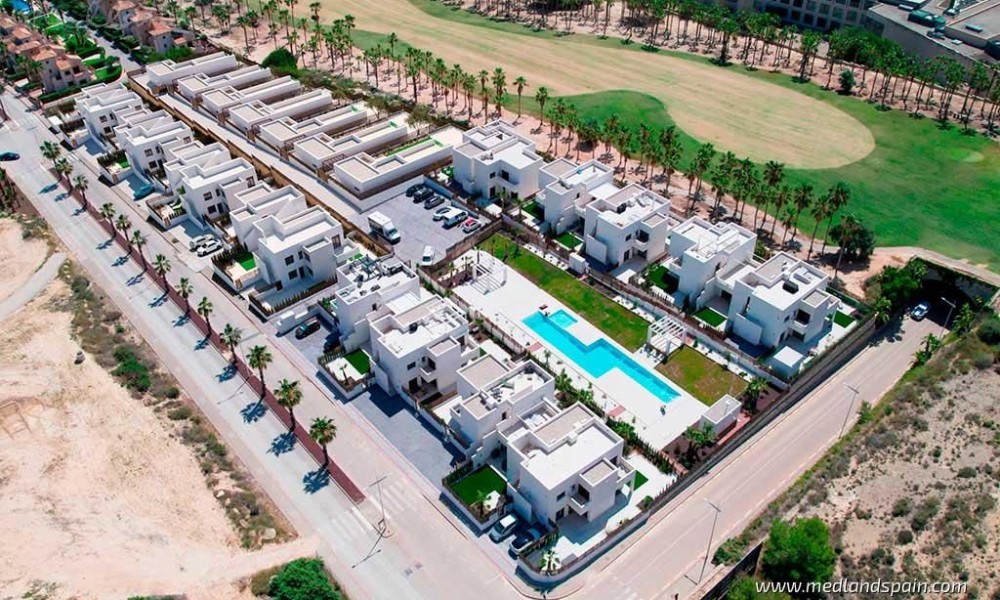 Properties in the exclusive La Finca golf resort, surrounded by lush vegetation and beautiful landscapes. The area is close to the best beaches on the Orihuela Costa and is only 2km away from the town of Algorfa. Orihuela Costa has become one of the main destinations for buying a property on the southern coast of Spain, complete with a variety of shopping and leisure facilities, making it ideal for year ‘round living.The La Finca resort has a modern 5* hotel with SPA and sports area with tennis and padel courts, a restaurant, events facilities, and a commercial area.