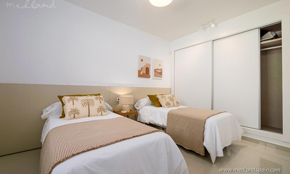 All these services add to the value of the properties available in the La Finca resort, making them a good investment opportunity.The project presents a choice of models: ground floor apartments with 2 bedrooms and a garden; top floor apartments with solarium; and townhouses with 3 bedrooms and a garden. All properties have a modern design with an open plan lounge and large terraces.