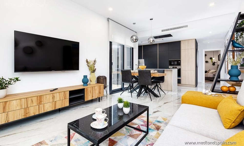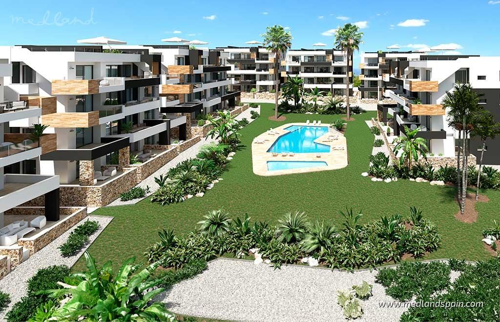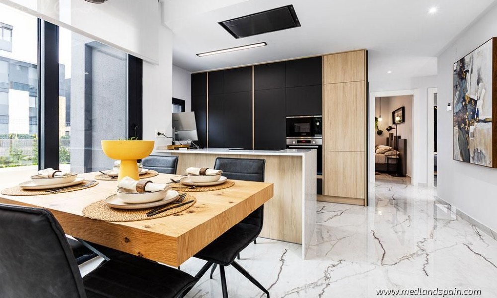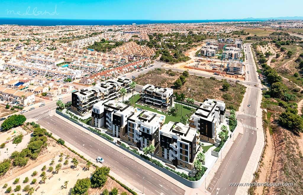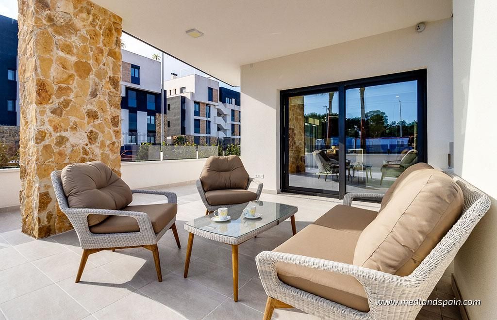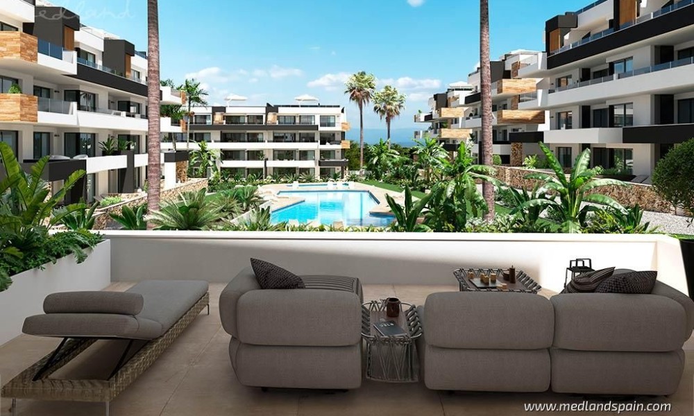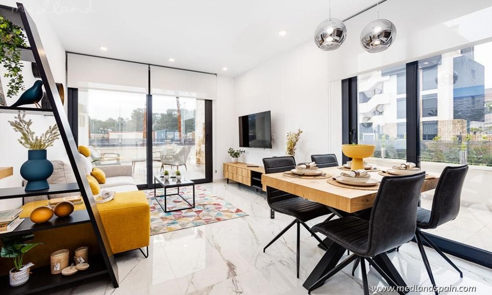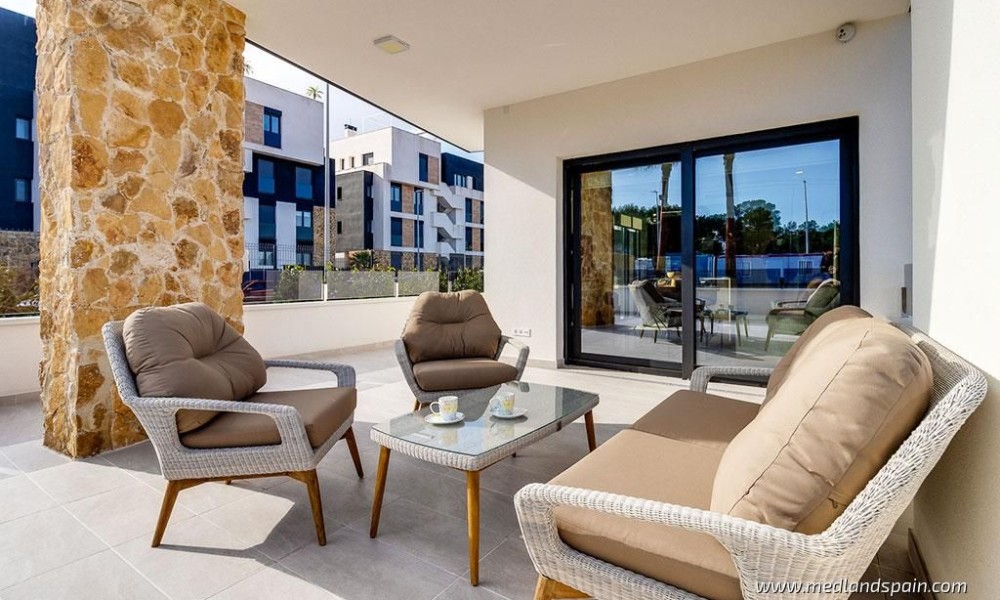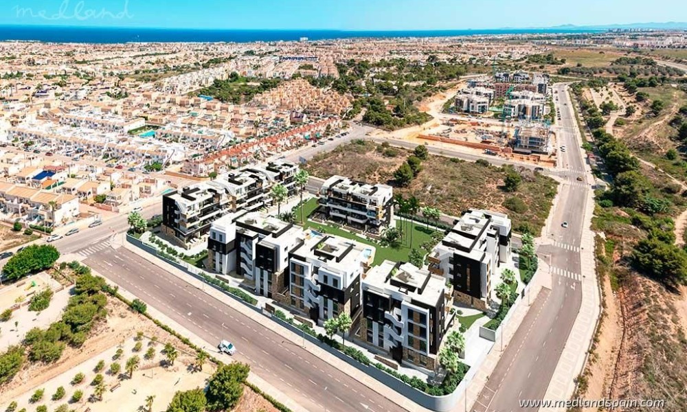 Exclusive apartment complex in Orihuela Costa, very close to the Torrevieja Salt Lake area, and an established commercial area with a wide selection of services, like supermarkets, bars and restaurants, banks, pharmacies, etc. It’s also the ideal area for golf enthusiasts, with a choice of four courses within a 10-minute drive, as well as the fabulous Blue Flag beaches of the Orihuela Costa, and the spectacular Zenia Boulevard shopping centre.Modern apartments and penthouses available with 2 bedrooms and 2 bathrooms. The orientation allows each apartment to enjoy the morning sun, and they present an open plan living area, with a combined kitchen, dining area and lounge, which opens onto the terrace.