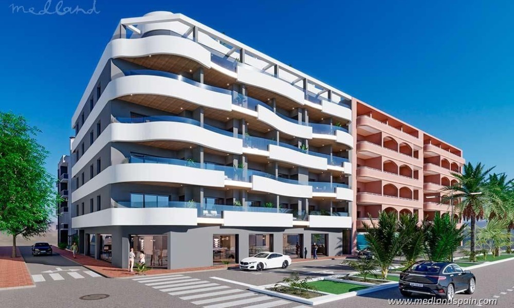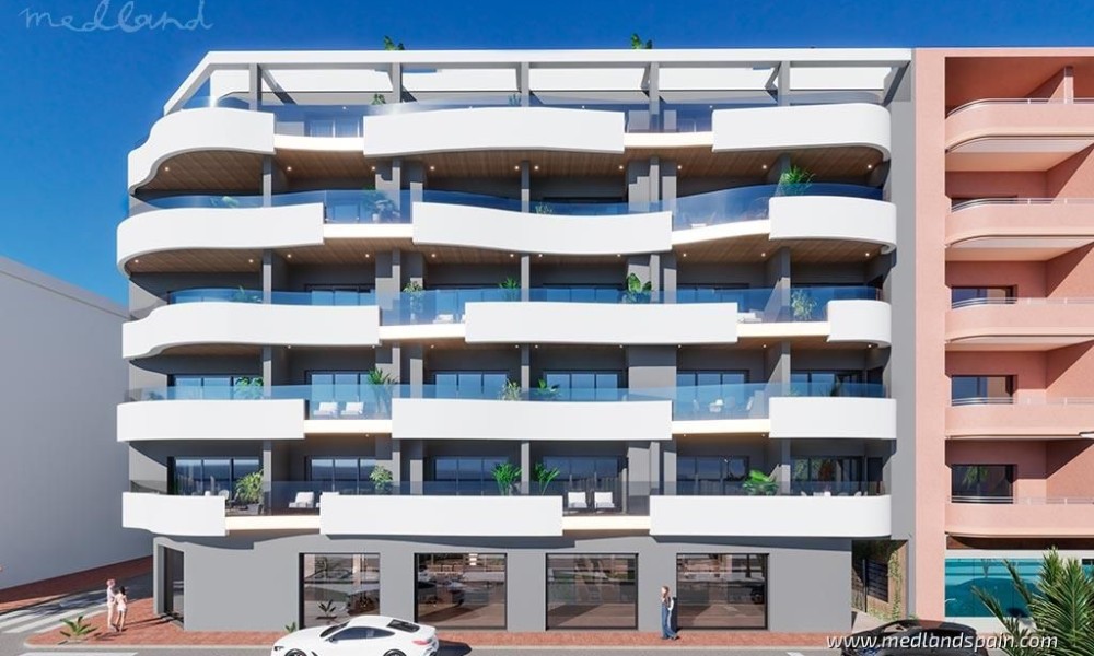 New apartment project, only 130m from the Los Locos beach in Torrevieja. The town offers a wide selection of daily amenities within walking distance, like supermarkets, banks, pharmacies, as well as the impressive beach promenade with many restaurants and cafés. The municipal sports centre, with various sports fields, tennis and padel courts, and a large indoor pool, is only a short drive from the project. The main bus station is close by, where daily buses are available to Alicante airport, as well as to the Habaneras or Zenia Boulevard shopping centres, and other cities in the area. These apartments are an ideal investment opportunity, as either a holiday home or for permanent living, especially for those without, or who don't want to rely on a car.
