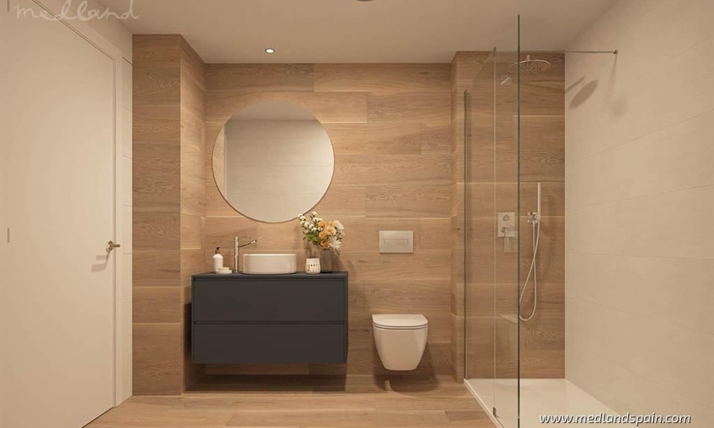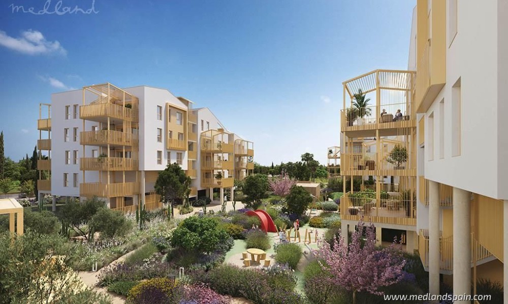 There are also apartments on two floors, with 2 or 3 bedrooms and a private garden. All homes have a spacious open plan living area, combining the lounge, dining area and kitchen into a single space, with large windows that open onto a terrace. The master bedroom has a private bathroom, in all models with 2 or 3 bedrooms.The homes will include solar panels for lower energy consumption, fully installed ducted A/C, electric blinds, and a parking space with pre-installation for a charging station for electric cars.The complex is completely closed, ensuring security and privacy for residents. The community areas include a large pool for adults and children, beautiful gardens, areas for relaxation or reading, or for enjoying sports activities like yoga, a children’s playground, petanque area, a social club/meeting room, a pet spa, a gym, a sauna, and parking for bicycles with a charging point for e-bikes.As an added feature, the complex also includes community facilities on the beachfront. This is a small building, exclusively for residents to make use of during their visit on the beach. The facilities include a pool, outdoor showers, toilets, parking for bicycles and charging points for e-bikes, as well as storage for nautical equipment.