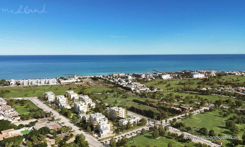 Innovative residential complex, only 500m from the beautiful La Almadraba beach in El Verger, and 6km from the centre of Denia. The project is in a peaceful and natural environment, with views of the mountains. Within walking distance of the complex are a variety of supermarkets, bars and restaurants, which are supplemented in the nearby town of Denia. The excellent road network makes it possible to reach other areas of the Costa Blanca, like Moraira, Calpe and Benidorm in 30 minutes, and Alicante and its airport in just over an hour.The project combines an innovative and sustainable approach to the