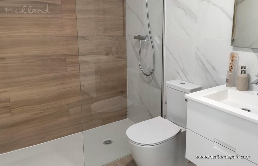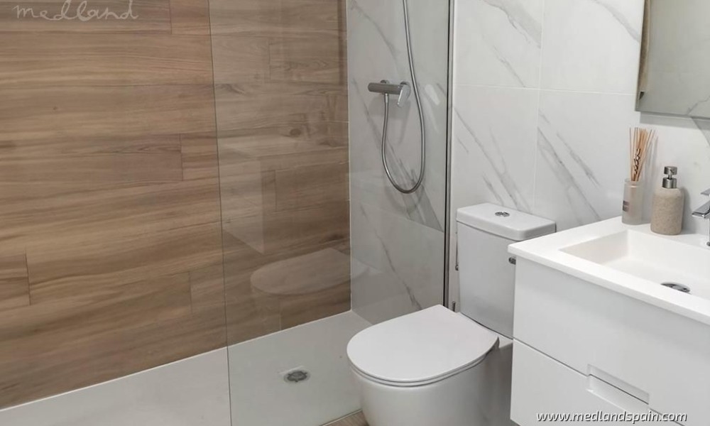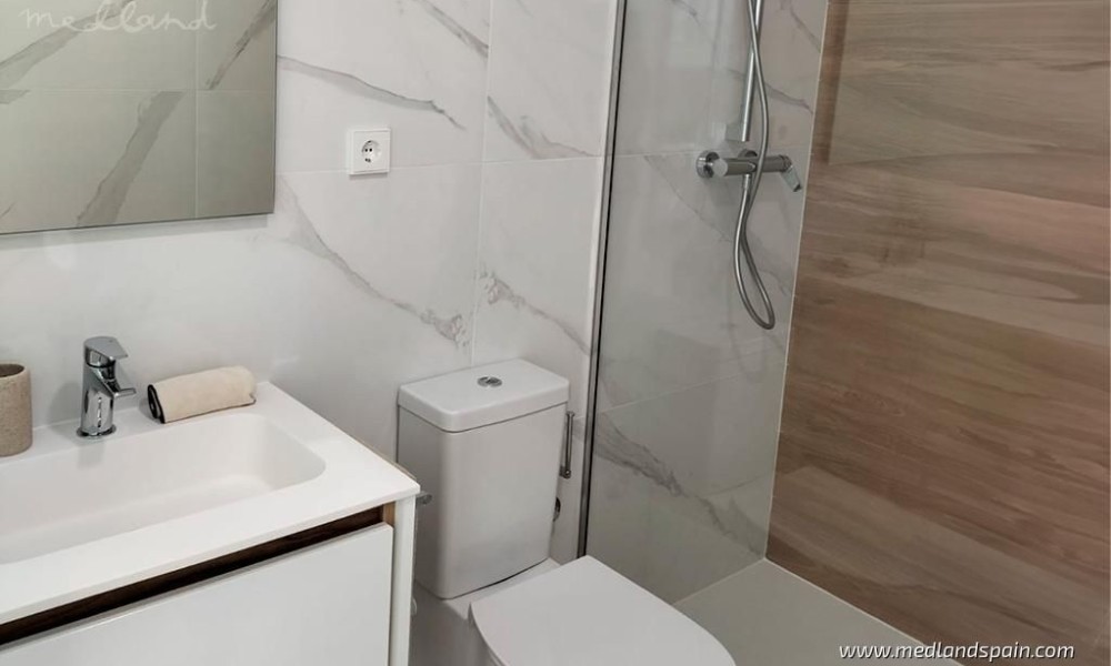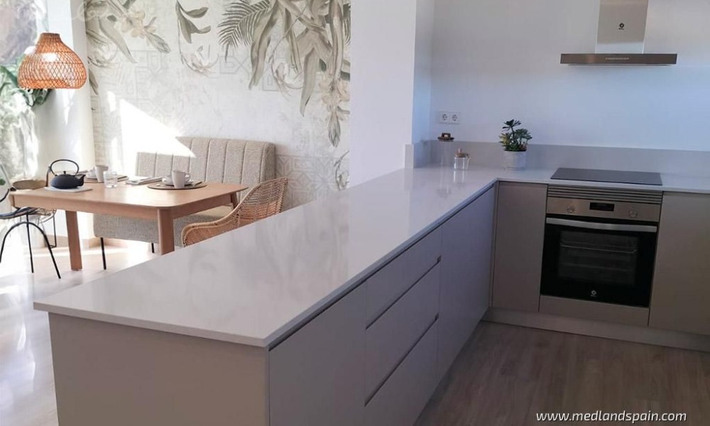 Residential complex of apartments in Vistabella Golf, a residential area 15 minutes drive from the beaches of Orihuela Costa and a beautiful golf environment with all amenities such as shops, restaurants and first class sports facilities. And very well connected to the major towns in the area.The promotion offers 2 and 3 bedroom apartments, all with 2 bathrooms, in two different property types; ground floor with garden and top floors with a large private solarium.