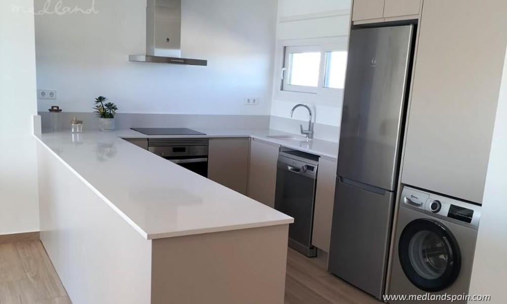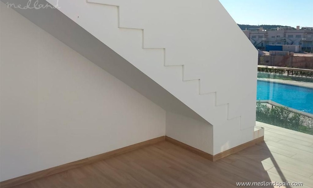 This project will be built in phases, and will eventually include terraced villas, with 3 bedrooms and 2 bathrooms, garden and private solarium.The gated community counts with spacious gardens and communal pool with separate area for adults and children.There is the option to buy a parking space within the development.