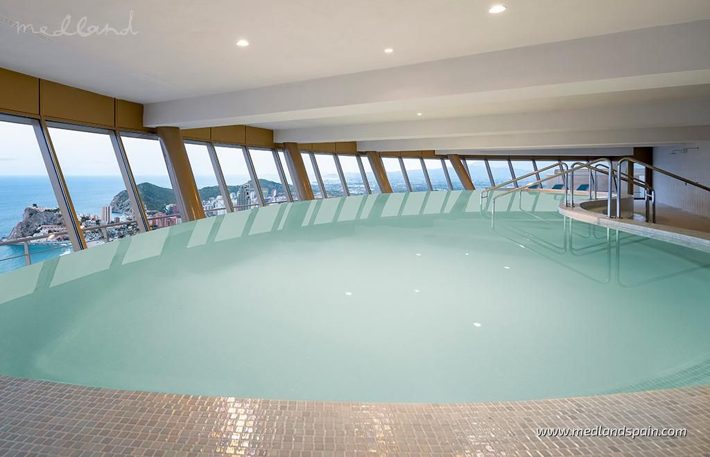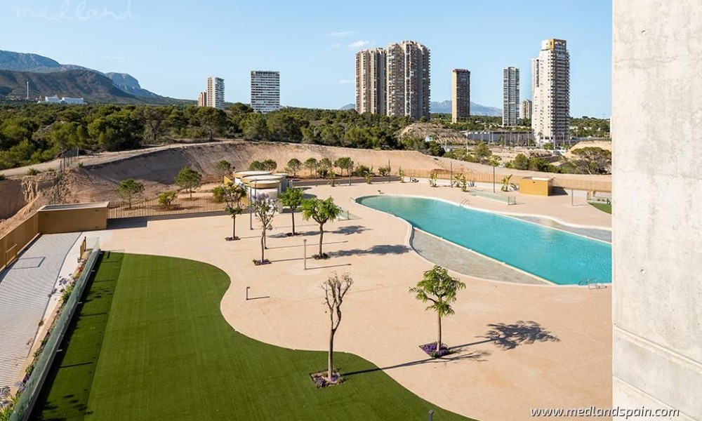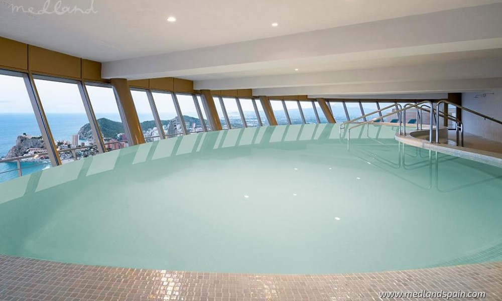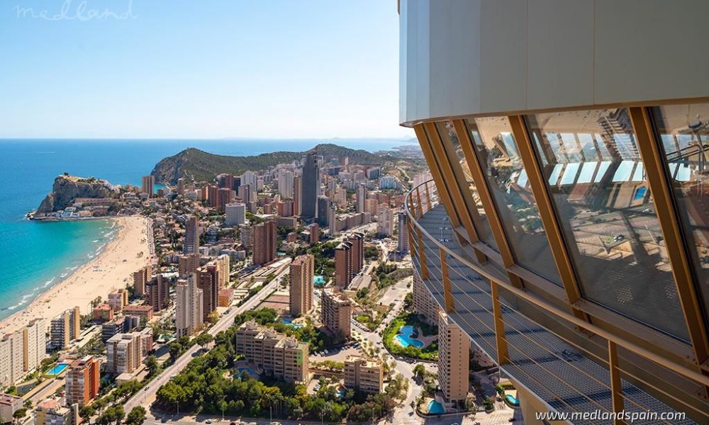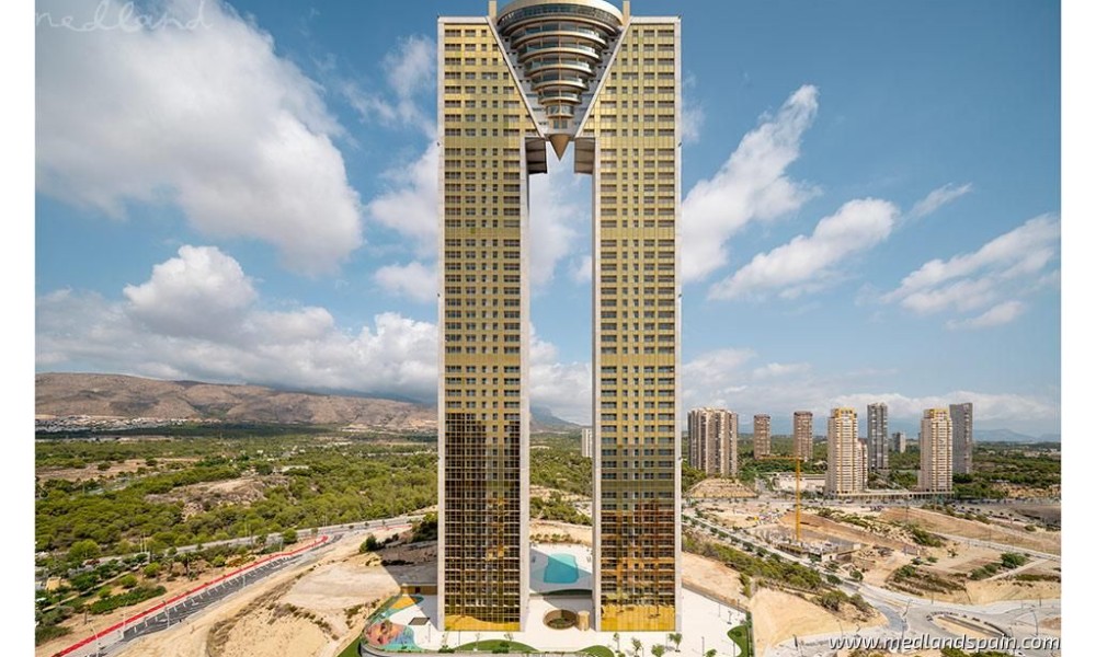 Modern apartments in one of the most iconic buildings in Benidorm, only 300m from the beach. This impressive 47-floor building lies in the most enviable location of Benidorm, with a wide range of daily services and amenities within walking distance, as well as the beach promenade which is dotted with cafés, bars and restaurants. The ‘old quarter’ is not far from the complex, with its narrow streets, traditional buildings, and souvenir shops. The city is full of entertainment and leisure attractions like Terra Mítica theme park, Benidorm Palace, Aquaparks, as well as a vibrant nightlife with its many pubs and discos. The AP7- and N332 motorways connect Benidorm with other important cities, as well as Alicante airport, which is less than 45 minutes away.The complex comprises exclusive apartments, with 2, 3 and 8 bedrooms, all with spectacular sea views. Each apartment presents an open plan living area, with a combined lounge, dining area and kitchen. The floor-to-ceiling windows in the lounge, open onto fantastic terraces, where the temperate Costa Blanca climate can be enjoyed. All master bedrooms have a private bathroom.