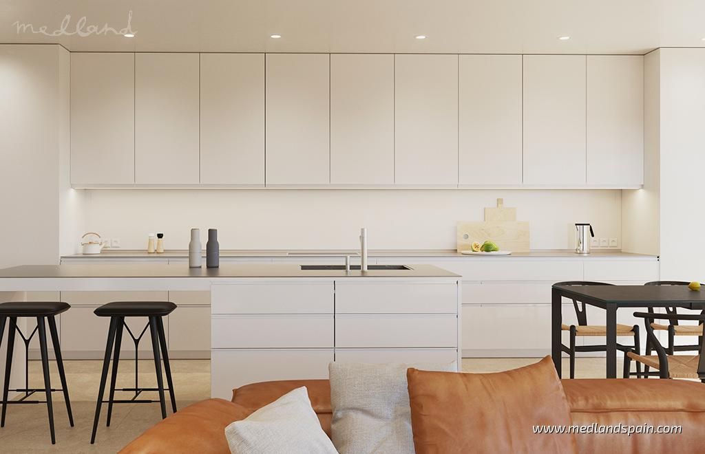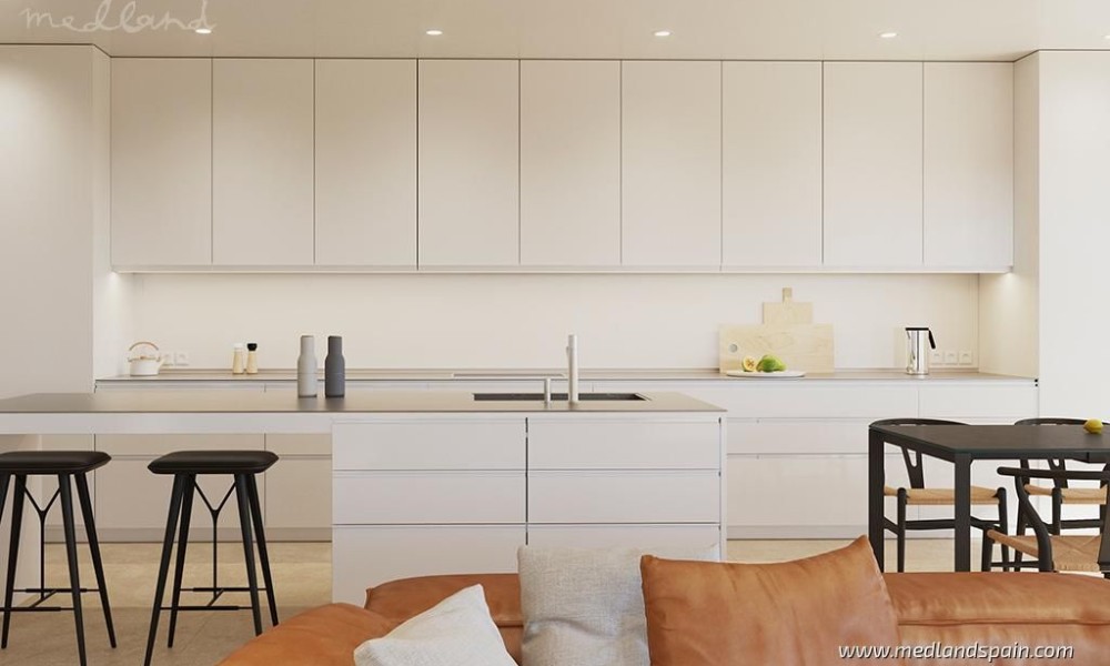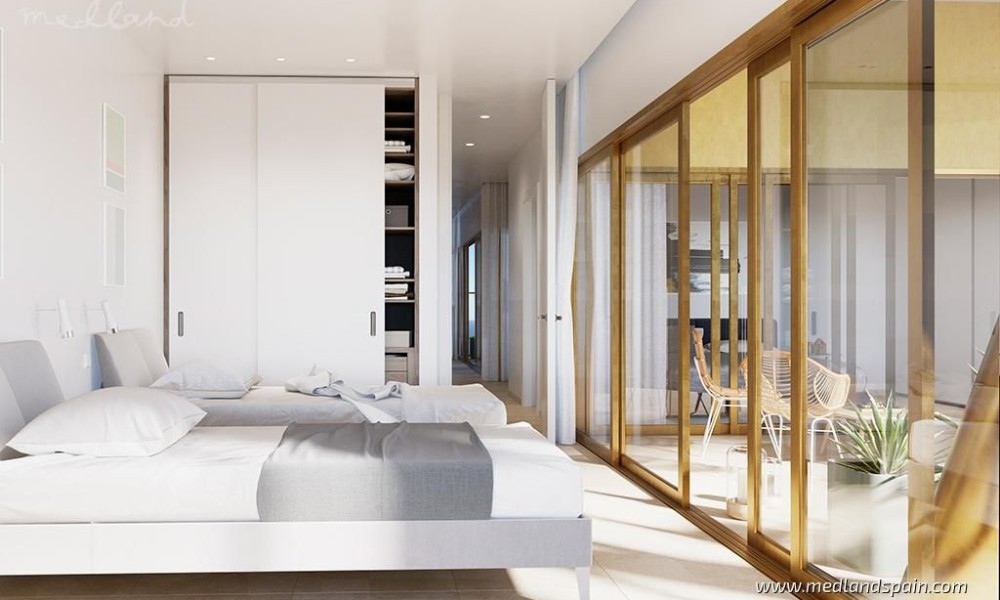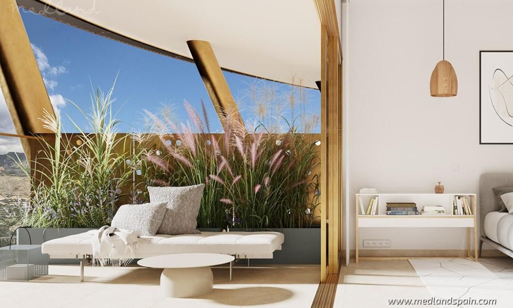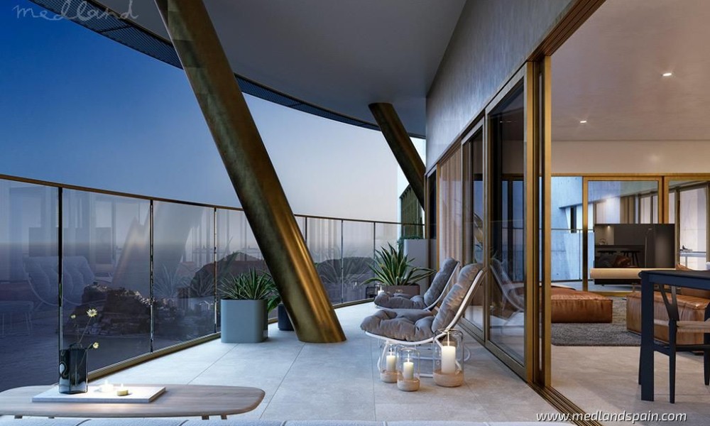 The apartments have been designed with every convenience in mind, and include ducted hot/cold air conditioning, kitchen fully equipped with white goods, underfloor heating, fitted wardrobes, indoor and outdoor LED lighting, storage room, and private parking.This is a closed complex, offering 24hr security and concierge services, secured entry points, and CCTV surveillance throughout the complex. The community facilities are just as impressive, and are available for all the residents to enjoy. The outdoor facilities include a large beach-style pool, and a children’s pool, surrounded by an area for sun loungers, a children play area, and an outdoor restaurant. The indoor facilities include a gym, an events room, a café and a second restaurant. The top floors of the building are reserved for the ‘wellness’ area and the roof top terrace. The wellness area includes a spa with massage rooms, a gym, yoga studio, a sauna, and an infinity pool with sea views. The roof top terrace is one of the highest in Europe, and includes a bar and a spacious terrace and various Jacuzzis.