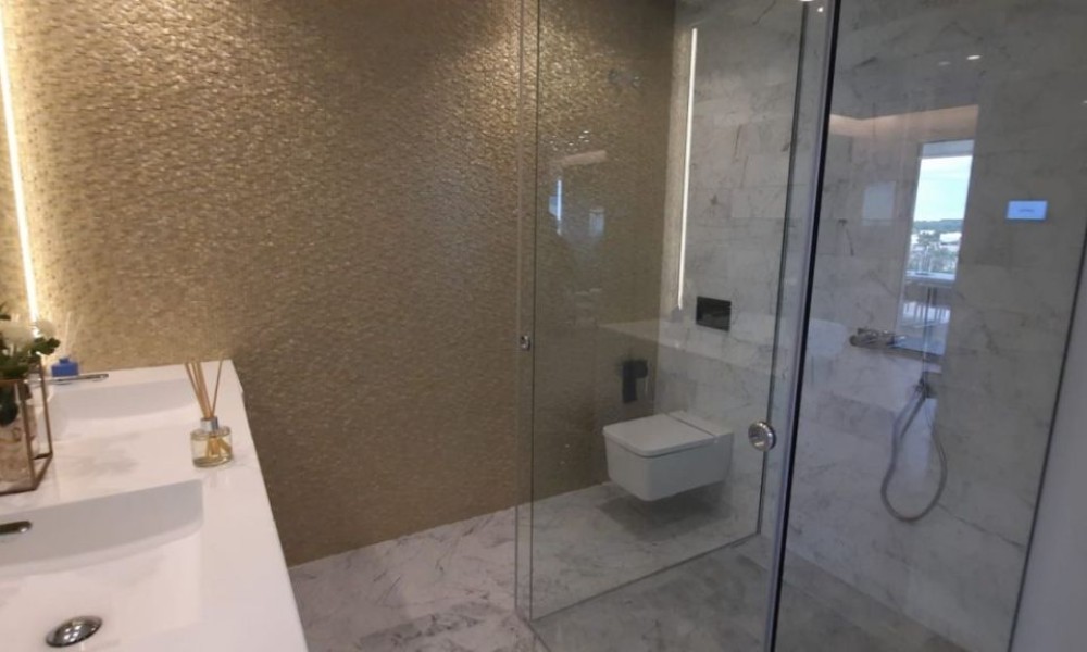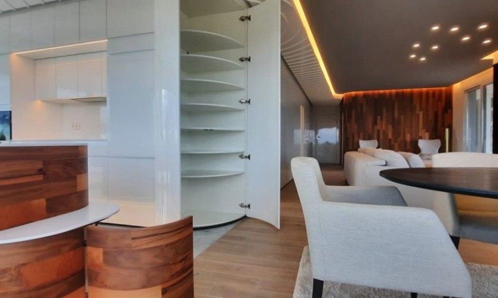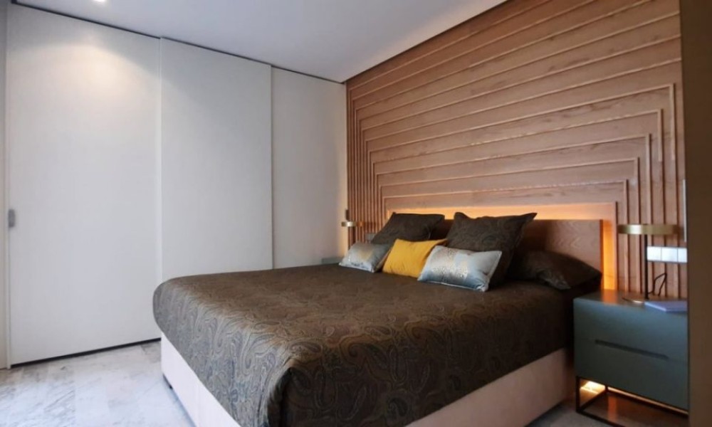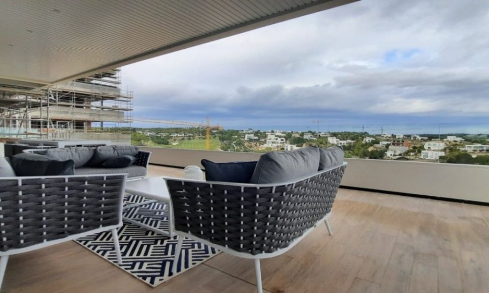 Unique Project, Luxury Apartment ~3 bedroom, 2 bathroom second floor flat, unique in Spain, designed by a world famous architect with a new idea of luxury based on the “new warm contemporary design” and focused on the outline of spaces with friendly and complacent forms, covered with soft colours, and native environments that in their connection with the exterior fill all the rooms with harmony.~ ~ The flat consists of an open-plan living-dining room that flows naturally into the open-plan kitchen with island. 2 double bedrooms with fitted wardrobes, and a spacious master bedroom with dressing room and en-suite bathroom. A family shower room completes the flat. ~ ~ Large schuco doors provide plenty of natural light and give access to the 73M² terrace, ideal for enjoying the Mediterranean climate.~ ~ Extras included: Interior Design by Clavel Arquitectos, High quality materials (marble, glass, wood in master suite…), Motorized exterior blinds, Schüco door system, Central Air Conditioning, Underfloor heating in the bathroom, Osmosis filter in the kitchen, Domotic, Outdoor Infinity pool with beach effect, Indoor pool, Gymnasium, Garage and Basement, Spectacular views over the golf course.