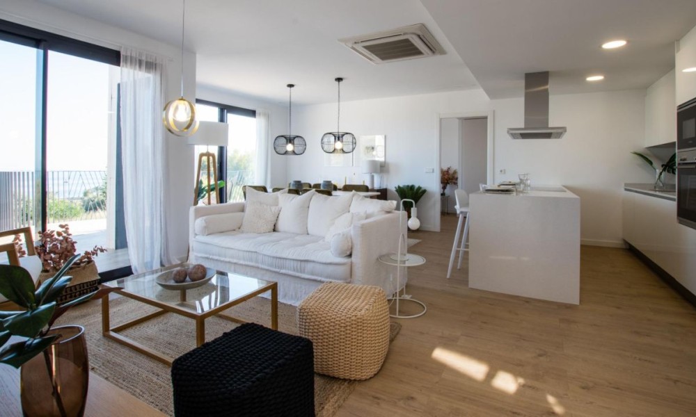 A new residential complex of 42 flats and penthouses is being built in Villajoyosa, just a stone’s throw from the beach. These luxury homes, ranging from 1 to 3 bedrooms, have been designed down to the last detail. Just 200 metres from the sea, they offer spacious terraces perfect for relaxing and enjoying the sea views. Set in natural surroundings, the complex features a swimming pool, gardens, children’s playground, fully-equipped gym and sauna. On the ground floor there are one-bedroom, one-bathroom houses with terraces and private gardens. The flats have 1 to 2 bedrooms and 1 to 2 bathrooms, with spacious terraces, some of which are covered.