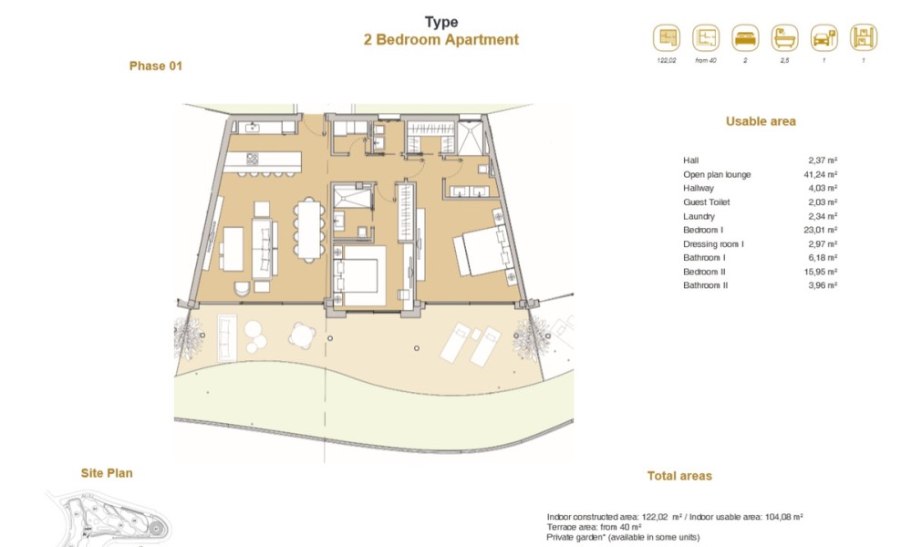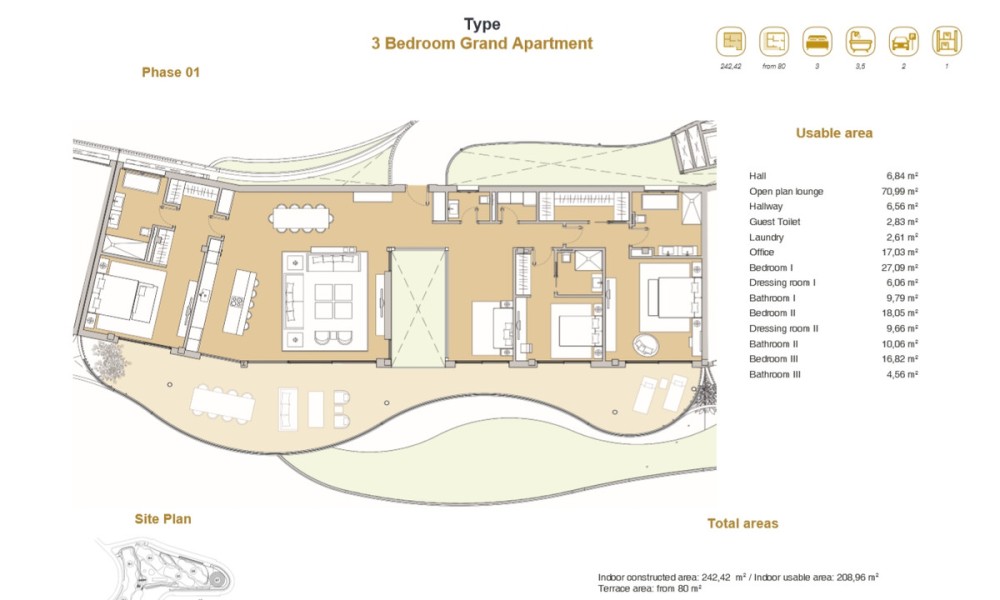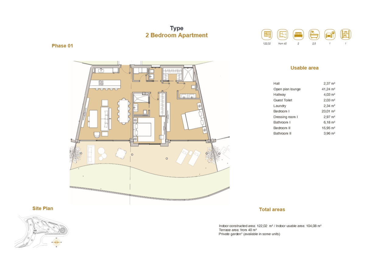 This fabulous development will be fully gated, offering a 24 hour security service and many exclusive facilities onsite, such a Health Club with a Spa, a gymnasium, an indoor and outdoor lap swimming pool, a kid’s area and a concierge service offering services such as reservations, fridge stocking for arrival, dry cleaning, transport, private chef or property maintenance.Location wise, the properties are close to all general amenities (under 2 minutes drive) and the beach (10 min drive).