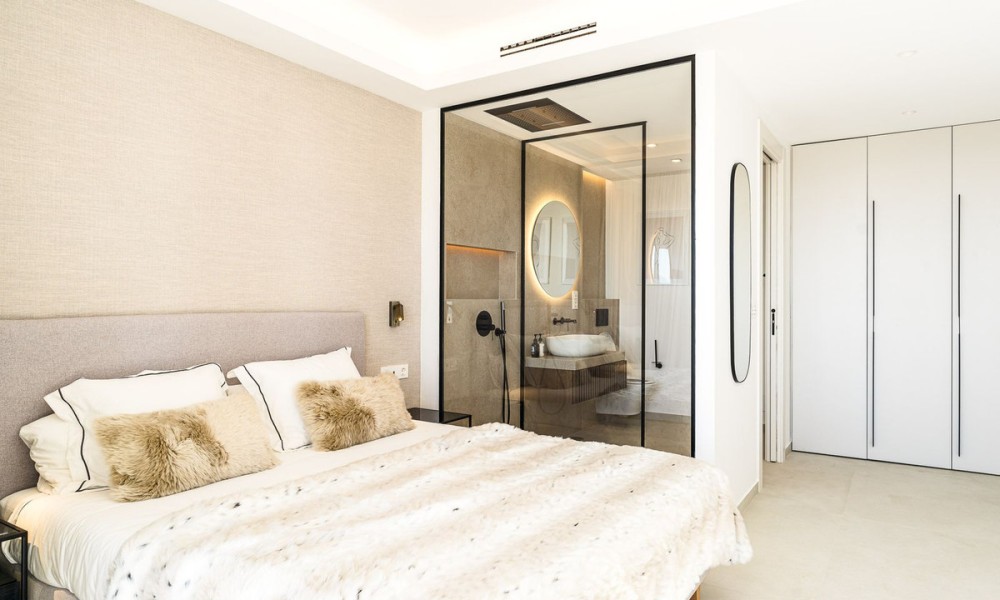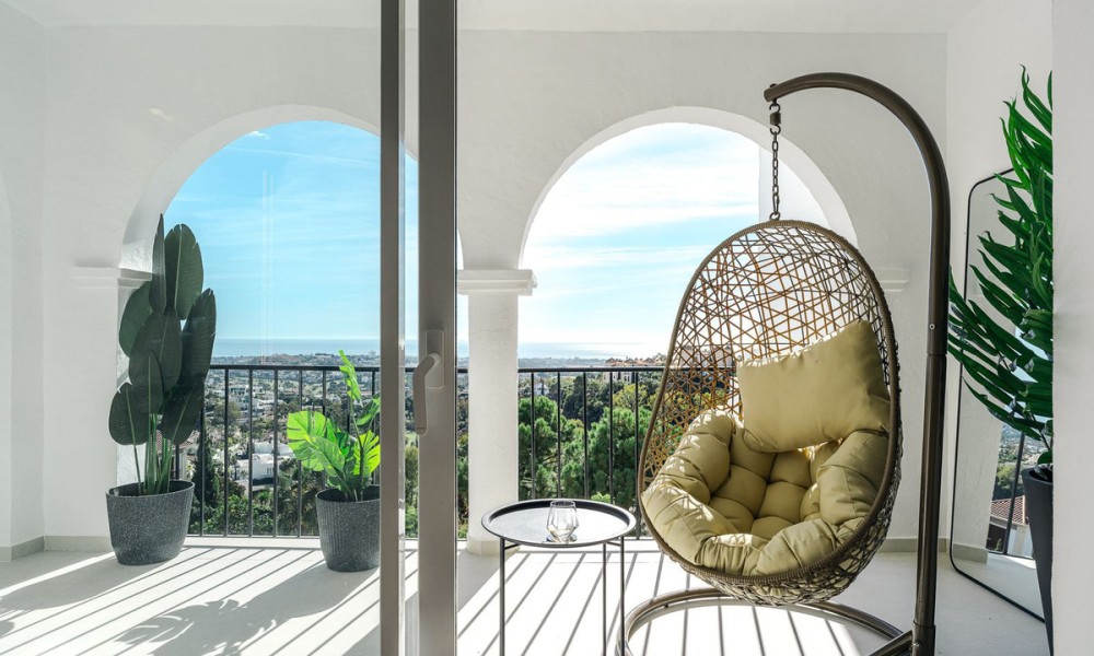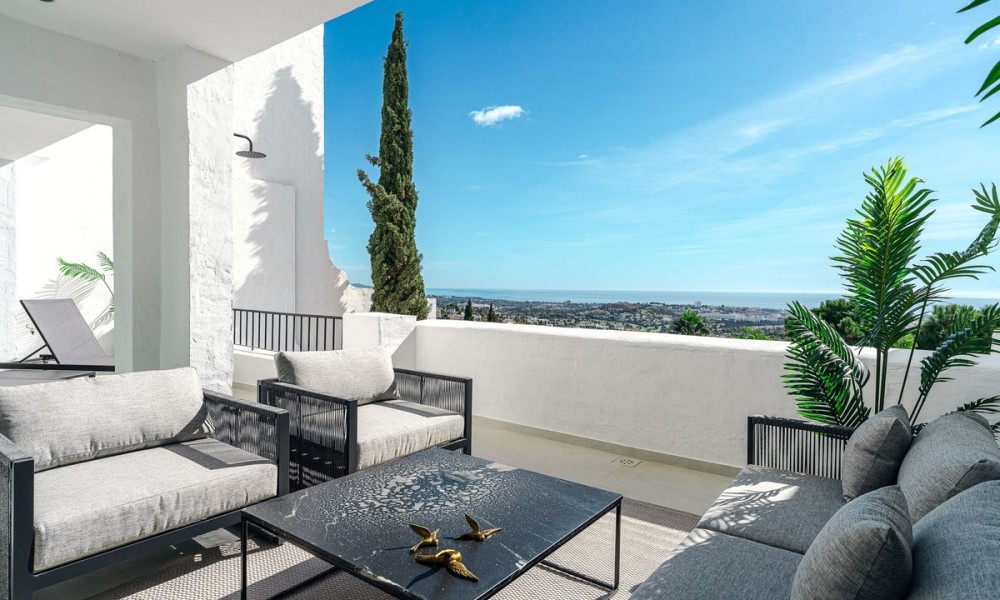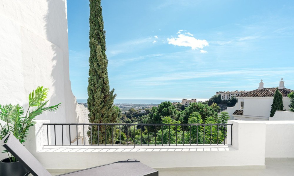The living room is naturally bright with a dining area, open plan kitchen and two spacious terraces with stunning views to the sea. Location wise, this fantastic duplex is close to all general amenities and under a 10 minute drive to San Pedro, Puerto Banus and the beach.