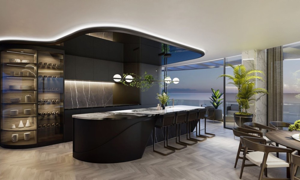 Brand new residential complex comprising 49 spacious residences, each boasting stunning panoramic sea views and a host of amenities. Circular Apartments are architectural marvel, the Circular Apartments offer breathtaking 300° views from sunrise to sunset. Each apartment features a circular atrium ensuring abundant natural light. Available in three-bedroom configurations, with en-suite bathrooms and open-plan kitchens merging seamlessly with living areas. The master bedroom includes a generous en-suite and walk-in wardrobe. An internal staircase leads to a private roof terrace, customizable with pools, jacuzzis, or outdoor kitchens.Four Bedrooms with A 499 square meter penthouse, featuring a master suite with walk-in closet and terrace access, alongside three additional bedrooms with en-suites and built-in wardrobes. The living area extends to an expansive roof terrace, perfect for relaxation or entertainment.