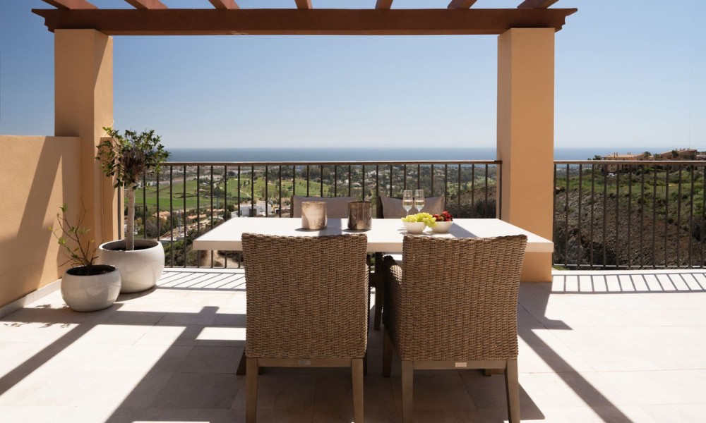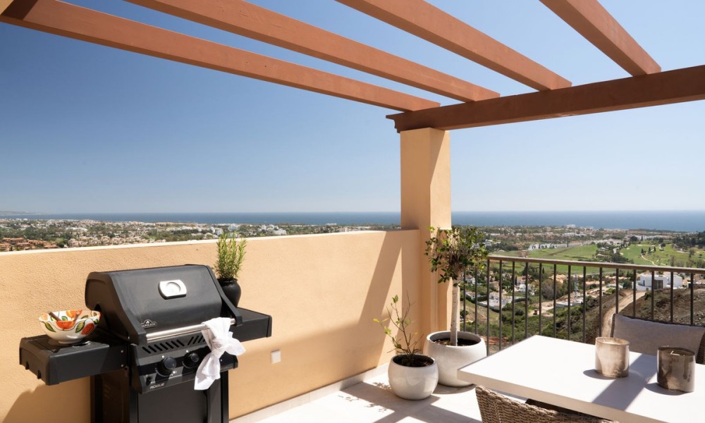 Luxurious 2 bedroom and 2 bathrooms penthouse is located in the Benahavis, Malaga. With its stunning views of the sea and golf course, this property offers a truly exceptional living experience. The communal pool and garden provide a tranquil and relaxing environment, while the private garage ensures convenient parking. Inside the penthouse, you will find a range of features that enhance the comfort and convenience of living. The fully furnished interior includes air conditioning, double glazing, and electric blinds. The fully fitted kitchen is equipped with top-of-the-line Gaggenau appliances, perfect for those who love to cook. Additional features of this penthouse include a storage room, a laundry room, and fitted wardrobes for ample storage space. The property is located in a gated community with 24- hour security service and a doorman, ensuring your safety and peace of mind.