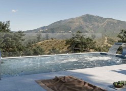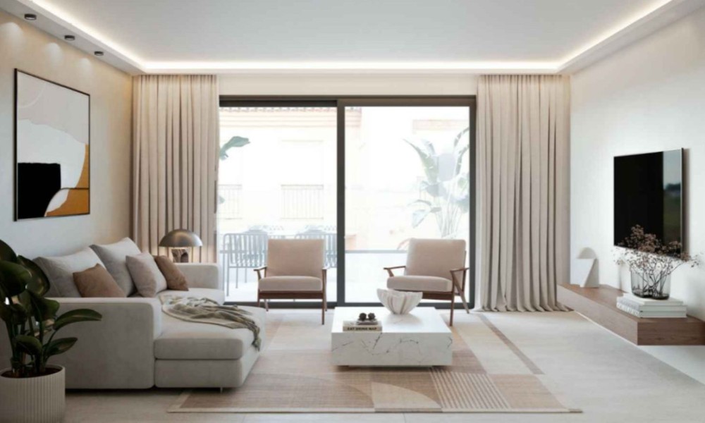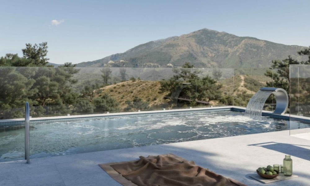 Located in Benahavís, this residential development is situated between the mountains and the sea on the Costa del Sol. The location provides access to local golf courses and natural hiking trails, while remaining a short drive from coastal marinas and beaches. The area is established as a private residential zone characterized by a high standard of living and proximity to regional services.The building features a contemporary architectural design with a staggered façade and clean lines. It is constructed using neutral-toned cladding and glass balustrades to integrate with the surrounding environment. To ensure energy efficiency, the homes are equipped with air-source heat pumps for heating, cooling, and hot water production. The structural orientation is designed to maximize the entry of natural light and reduce overall energy consumption.The interior layout consists of an open-plan living and dining area that connects directly to the kitchen. Floor-to-ceiling windows are used to provide light and a direct view of the exterior.