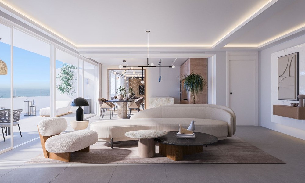 Brand new luxury apartments offering an exceptional living experience with breathtaking panoramic views of the Mediterranean Sea. Located in the sought after area of El Higueron, these stunning apartments are offered with an underground parking and storage rooms, and garden level apartments with private plunge pools, complete with sea views, create a tranquil environment for relaxation and rejuvenation. For those who enjoy fitness, the gym and sauna are perfect for maintaining a healthy lifestyle. The Mediterranean gardens and large green areas provide a serene environment for leisurely strolls or picnics with family and friends.