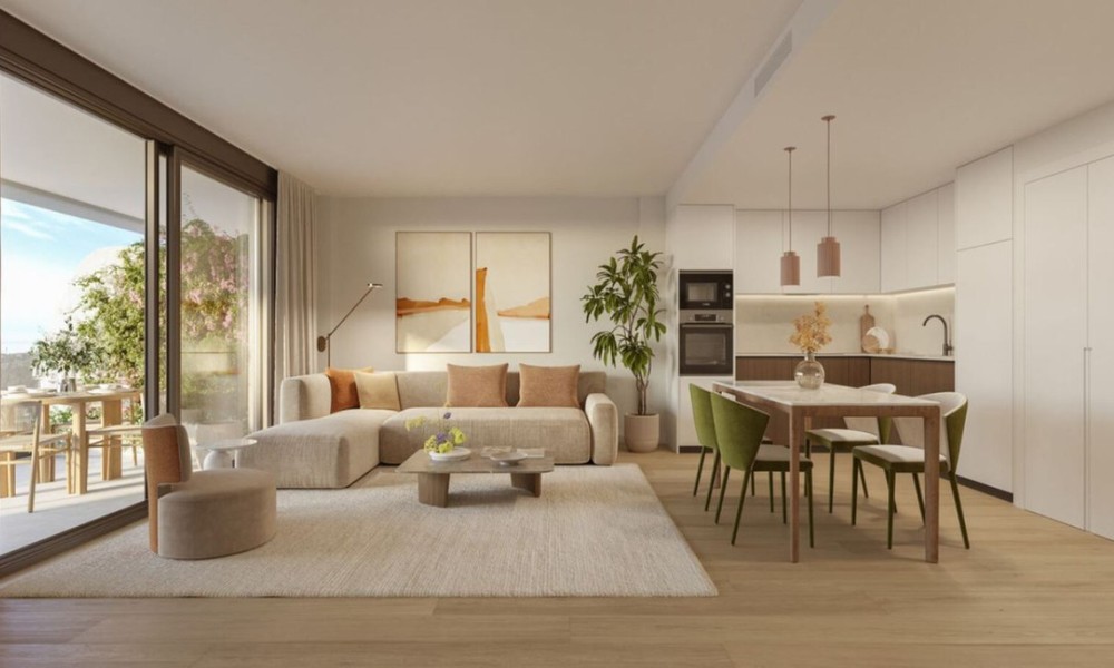 Landscaped pathways and native gardens connect carefully designed social spaces, encouraging interaction while maintaining a calm and natural atmosphere. The development offers a collection of resort-style amenities, including two outdoor swimming pools, a wellness spa, a fully equipped gym, and a co-working lounge with kitchen facilities, supporting both wellbeing and modern lifestyle needs.Every residence benefits from a private outdoor space designed as an extension of the home. Ground-floor properties feature peaceful garden patios, while penthouses enjoy expansive terraces with panoramic views across the Mediterranean and the surrounding hillsides, ideal for dining, relaxing, or simply enjoying the setting.The development is low-density and master-planned, with gated access, underground parking, and carefully designed arrival zones that create a sense of calm from the moment of arrival. Sustainability, privacy, and wellbeing sit at the heart of the concept, reinforced by bioclimatic architecture and a strong connection to nature.Optimally oriented to capture the Costa del Sol’s natural light, the homes enjoy sweeping views and changing light throughout the day, enhancing the year-round usability of both private terraces and communal areas.Set in the hills of Mijas, the location offers a rare balance of tranquillity and convenience. The beaches of Mijas Costa and Fuengirola are just 15 minutes away, while Marbella can be reached in approximately 25 minutes. La Cala de Mijas, with its relaxed beachside lifestyle, is close by, and Málaga city centre and international airport are under 30 minutes away.A thoughtfully designed development offering architectural distinction, resort-level amenities, and a serene natural setting, perfectly positioned for modern Mediterranean living on the Costa del Sol.