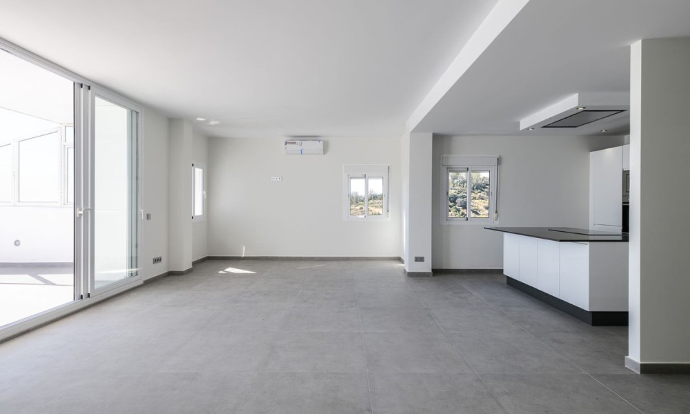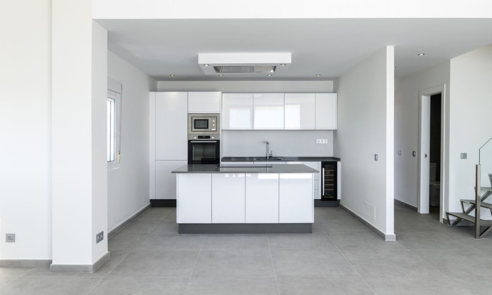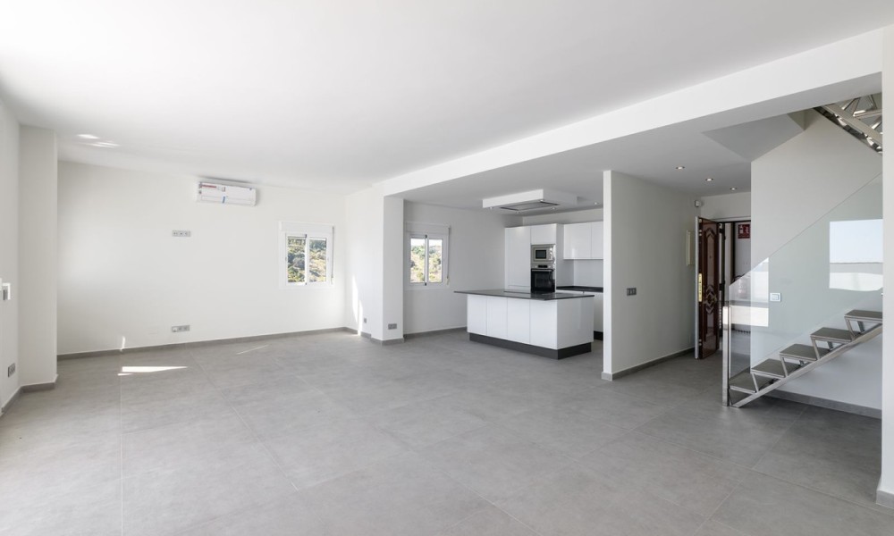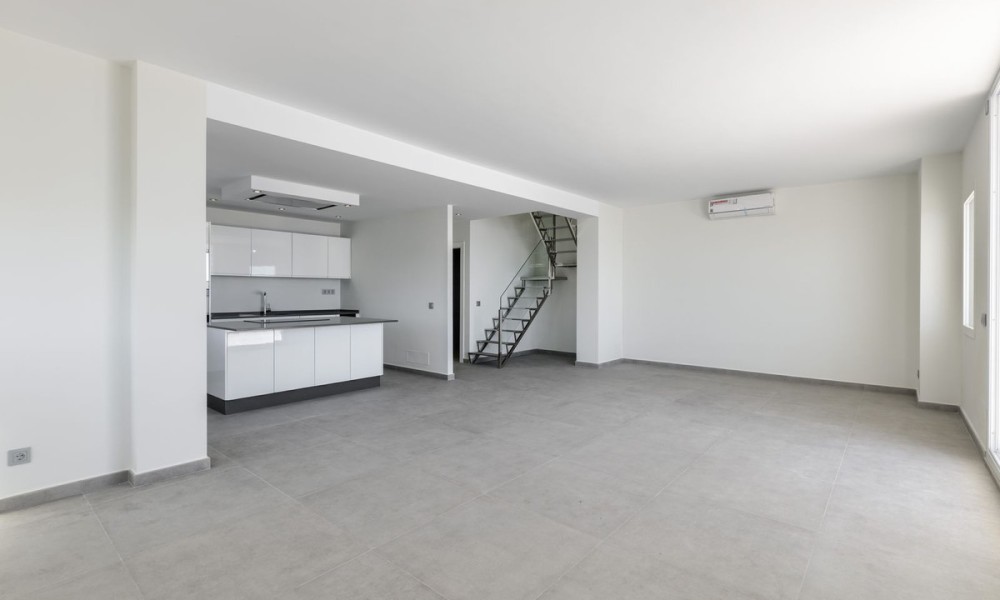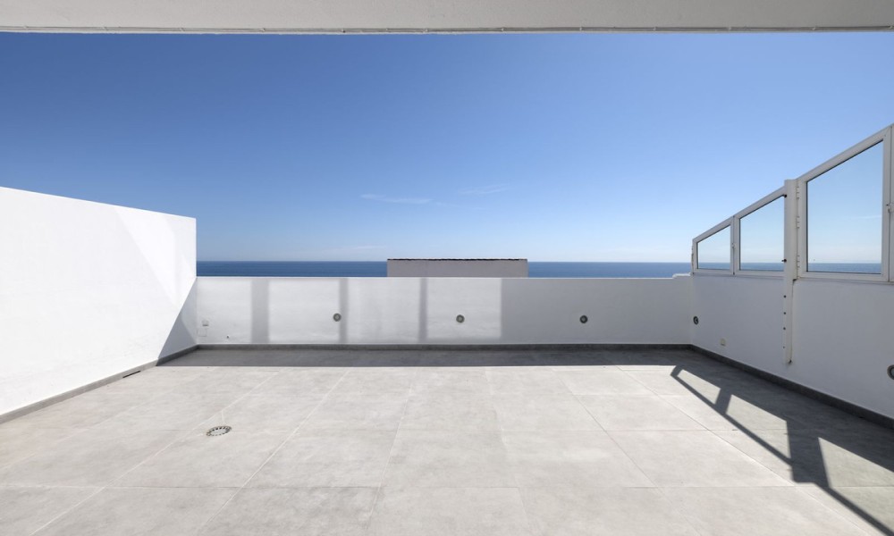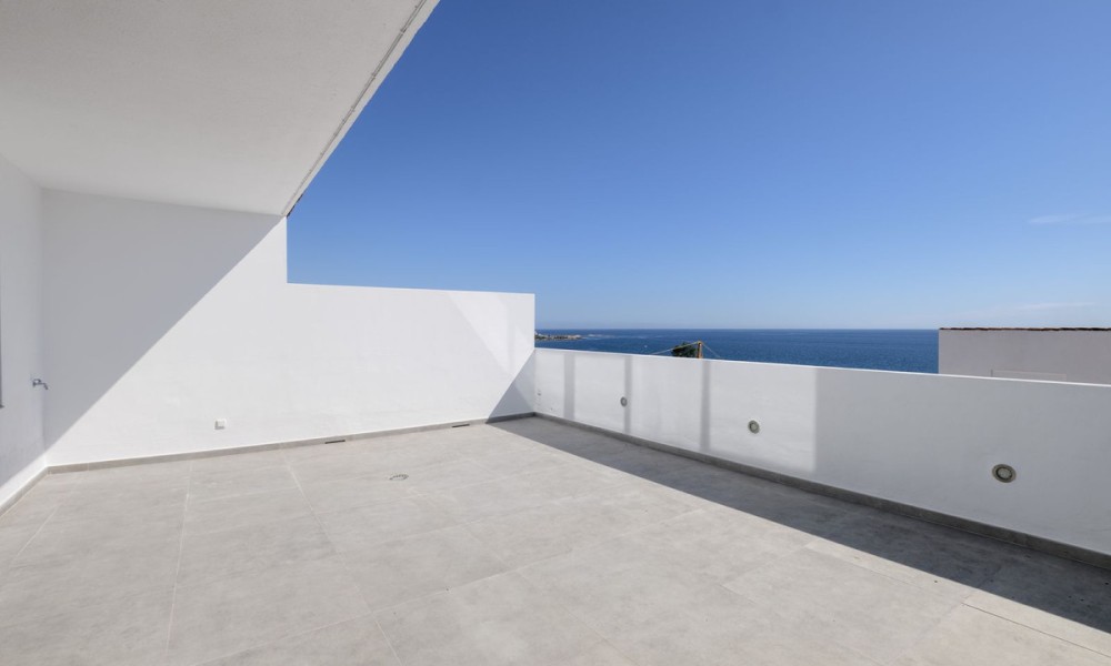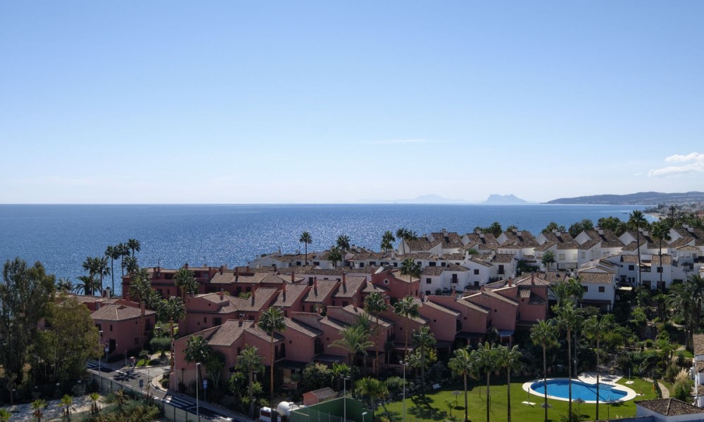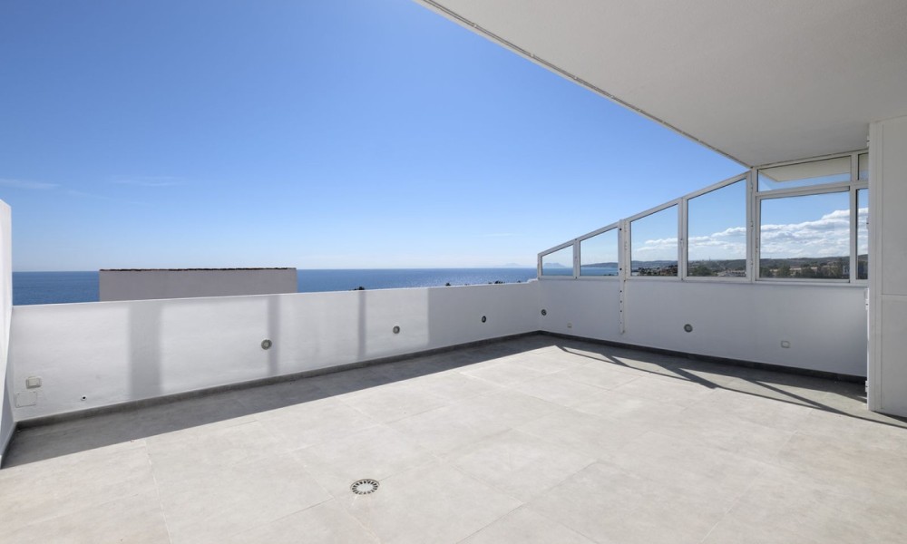 Beautiful fully renovated 3-bedroom duplex penthouse, perfectly situated on the front line of the beach, occupying the 9th floor, and offering breathtaking panoramic views of the Mediterranean Sea and the stunning coastline. This south-facing residence is a true gem, providing an unbeatable living experience in Estepona.As you step inside, you’ll be captivated by the spacious and inviting living/lounge area that seamlessly connects to an open-plan fully fitted kitchen, complete with high-quality Bosch appliances. This harmonious space is perfect for entertaining, and it offers direct access to a large covered and open terrace that showcases the most amazing views. Prepare to be mesmerized by the panorama and enjoy the fresh sea breeze. Additionally, a guest toilet adds convenience and practicality to the main floor.Moving to the upper floor, you’ll find the master bedroom en suite, featuring a dressing area that adds a touch of luxury to your living experience. Two guest bedrooms, thoughtfully designed and tastefully decorated, share a well-appointed bathroom. Furthermore, the upper floor also includes a laundry area and storage space, providing convenience and functionality.This exceptional penthouse is part of a gated community that offers an array of amenities for residents to enjoy.