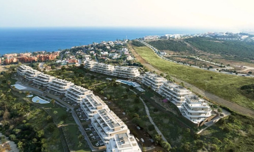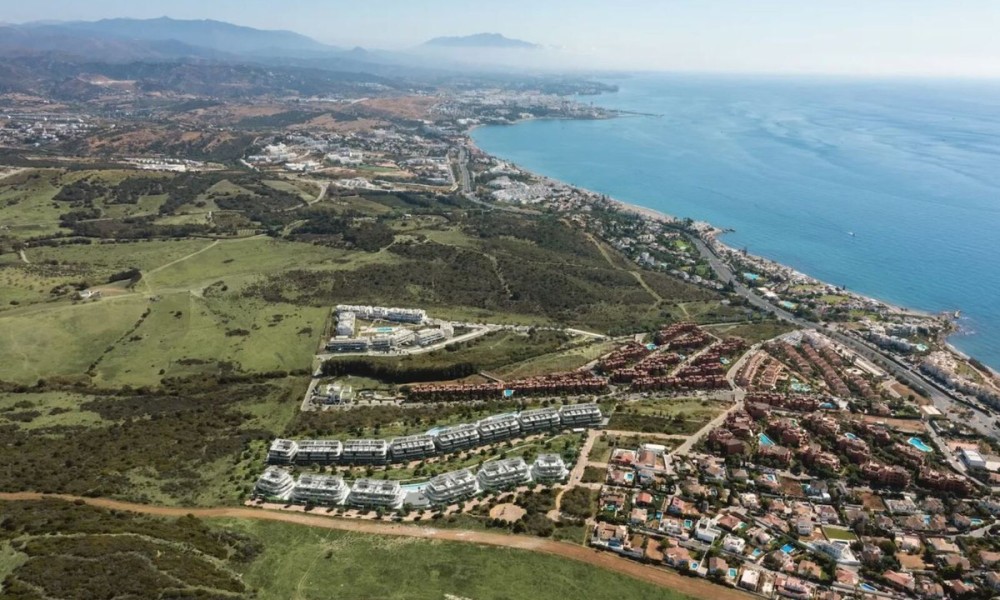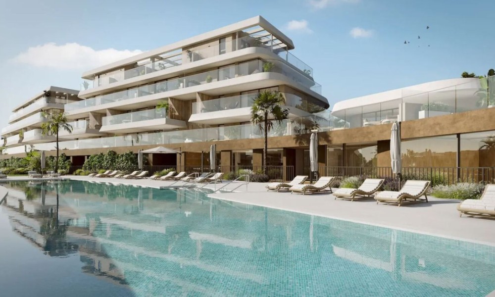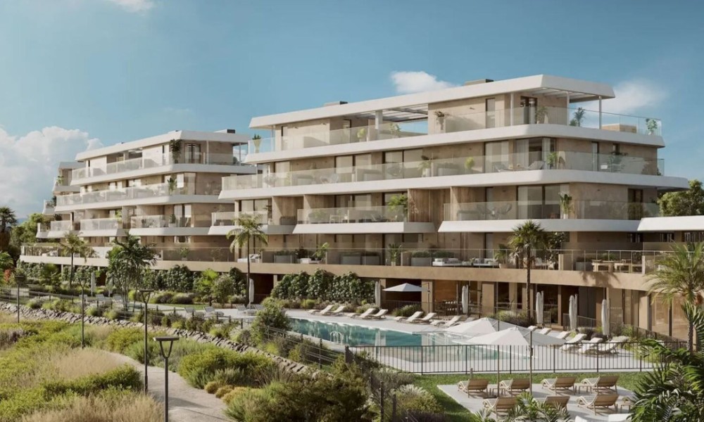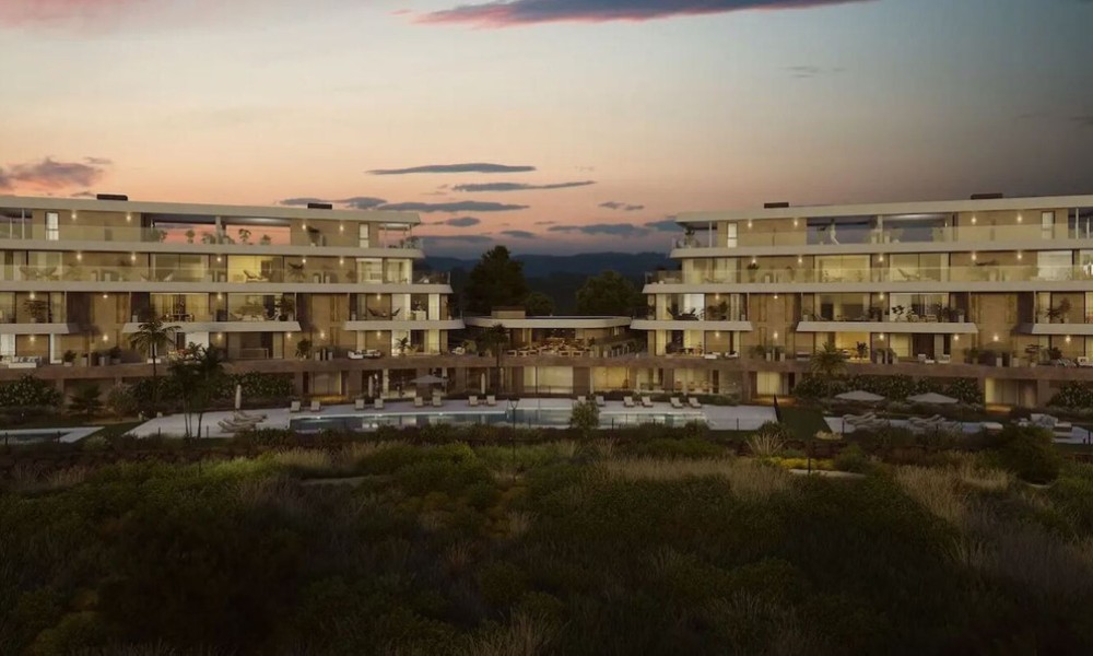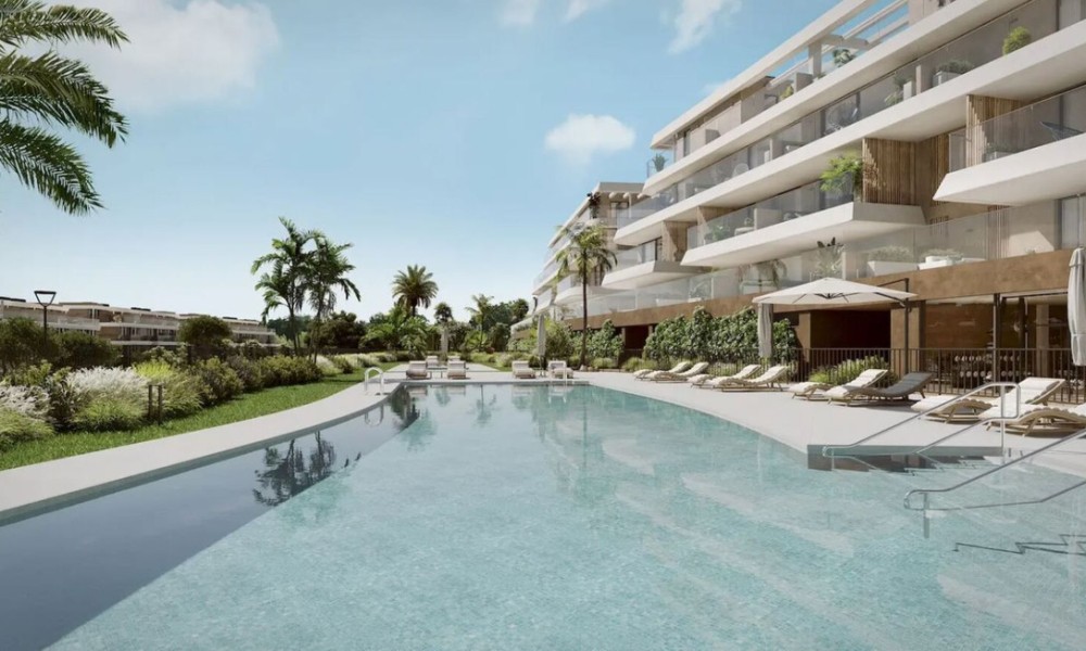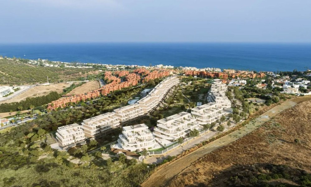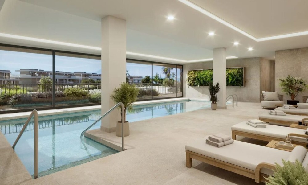 Brand new modern residential complex combines innovative design with natural harmony, seamlessly blending elegant architecture with its surroundings. Located near Estepona’s exclusive beaches, it offers spectacular views and the perfect setting to enjoy the sunny Costa del Sol climate.The homes feature spacious, light-filled interiors with high-quality finishes and large terraces offering panoramic views. Each terrace extends the living space outdoors, providing a perfect spot to relax and enjoy the Mediterranean lifestyle. The kitchens are equipped with modern appliances, including induction hobs, integrated refrigerators, and built-in ovens, combining style and functionality. Bathrooms feature premium fixtures like recessed faucets, resin shower trays, and suspended toilets for a luxurious touch.The community offers exceptional amenities, including outdoor pools for adults and children, a heated indoor pool, landscaped gardens, a gym, a yoga room, and wellness facilities such as saunas and a hammam.