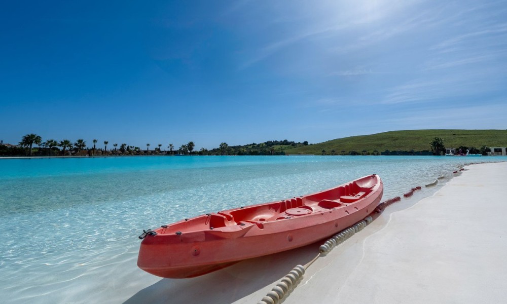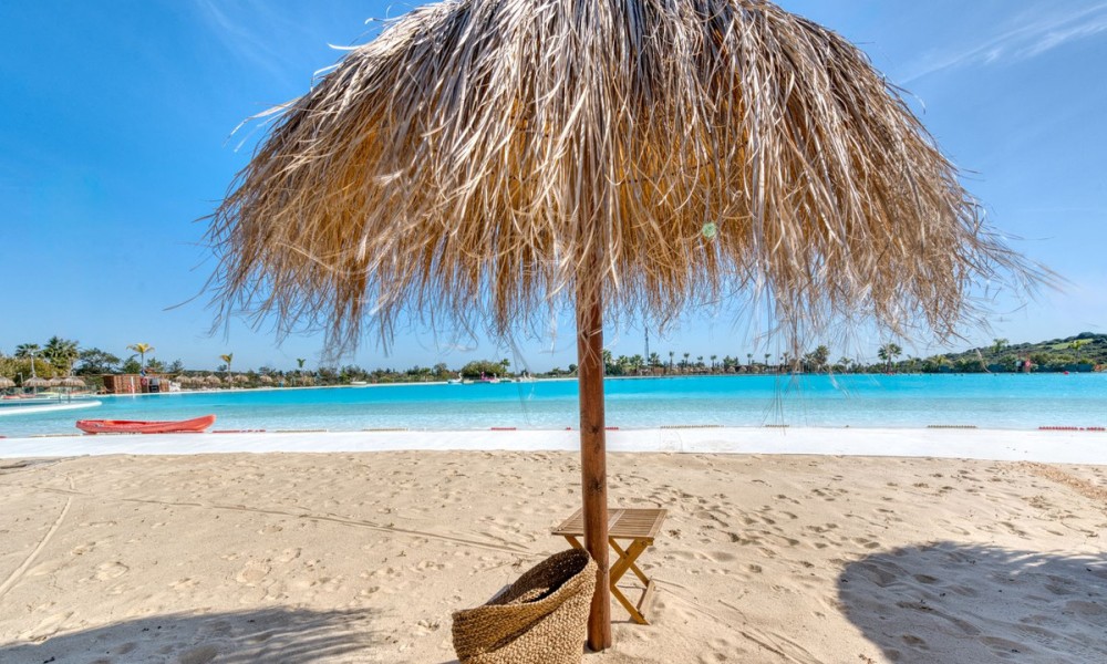 Outside, enjoy all-day sunshine from the wrap-around garden that overlooks one of the two resort-style free-form swimming pools. The apartment comes with secure underground parking and a private storage room. This is a completely unique apartment, surrounding Europe’s largest crystal Lagoon, where residents can kayak, paddleboard or relax on the private beach. You’ll also find a gym, sauna, kids’ playground, three restaurants, and 24h guarded security for total peace of mind. It’s a short 10-minute drive to Estepona’s beaches, and just 15 minutes drive to Puerto Banus and Marbella — perfectly placed for full-time living, holidays, or high-end rental investment. The apartment is also available for year-round rental, giving access to all the resort’s incredible facilities.