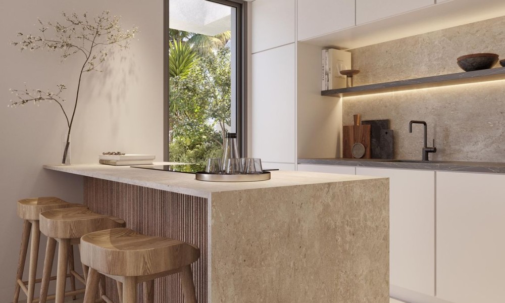 Blending sculptural elegance with understated sophistication, this low-density development introduces a new standard of contemporary Mediterranean living. The architecture maximises privacy and light through smart orientation, curved terraces, and natural finishes that echo the surrounding landscape. Soft tones, organic textures, and a seamless connection between interior and exterior define the overall design ethos.Each residence offers generous proportions with fluid layouts that invite natural light and airflow. Open-plan living areas extend onto spacious terraces or private gardens, creating a harmonious indoor-outdoor lifestyle. Floor-to-ceiling windows and thoughtful spatial planning ensure every home feels calm, bright, and inviting.Master bedroom suites are designed as serene sanctuaries, featuring walk-in wardrobes and spa-style bathrooms. Attention to detail and quality materials elevate these spaces, blending comfort with modern refinement. Private terraces or direct garden access enhance the sense of luxury and relaxation.With up to four-bedroom configurations available, homes offer ample accommodation for family and guests. Secondary bedrooms are well-appointed, with access to stylish bathrooms and terraces. Layouts support flexible use of space, whether for children, guests, or a home office.Ground-floor units feature wrap-around gardens with private pools, ideal for alfresco dining and entertaining. Penthouses offer solariums with rooftop pools and optional outdoor kitchens—perfect for Mediterranean evenings. The open-plan kitchens and lounge areas support a seamless flow for hosting and daily life.Residents enjoy access to resort-style amenities discreetly integrated into landscaped surroundings.