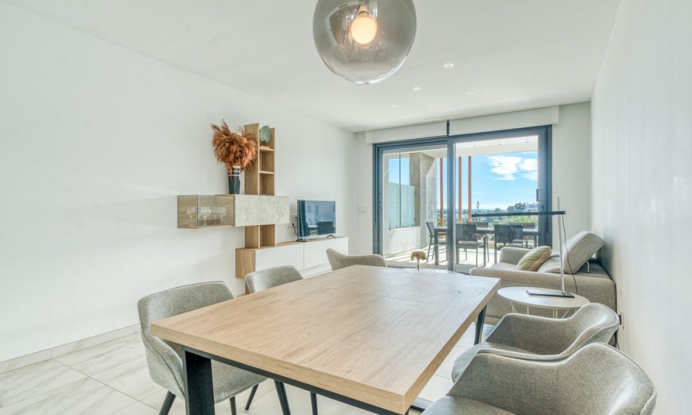 A solarium of over 100m2 offers panoramic views ideal for outdoor dining and entertaining.The community is immaculately maintained, and features landscaped gardens, a large swimming pool, heated Jacuzzis, a childrens’ play area, and is gated and secure. The apartment also comes with a secure underground parking space, and a private storage room. With everything close by just 1km from the beautiful Saladillo Beach, and around 3 minutes drive from top golf courses including Los Flamingos and El Paraíso. Puerto Banús, several International schools, fine dining restaurants and boutique shopping are all within easy reach. A stunning, almost brand new move-in-ready home in a prime location an absolute must view