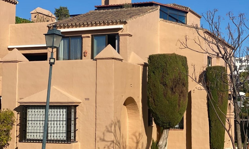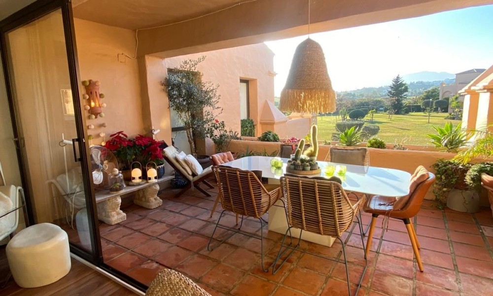 The property also includes an additional full bathroom and a guest toilet to serve the other bedrooms and visitors. The southwest orientation of the building ensures that these rooms receive sunlight throughout the day.For lifestyle and entertainment, the upper floor opens onto a private terrace featuring a barbecue area and zones for outdoor dining and relaxation. The gated complex provides communal facilities, including three swimming pools, paddle and tennis courts, and over six hectares of landscaped gardens. Security is managed 24 hours a day within the development.The property offers views over gardens and mountains. It is located near several golf courses, such as Atalaya and El Paraíso, and is within a short drive of San Pedro de Alcántara and the marina at Puerto Banús. The location is close to international schools and restaurants, with access to the A-7 highway providing a 50-minute connection to Málaga Airport.