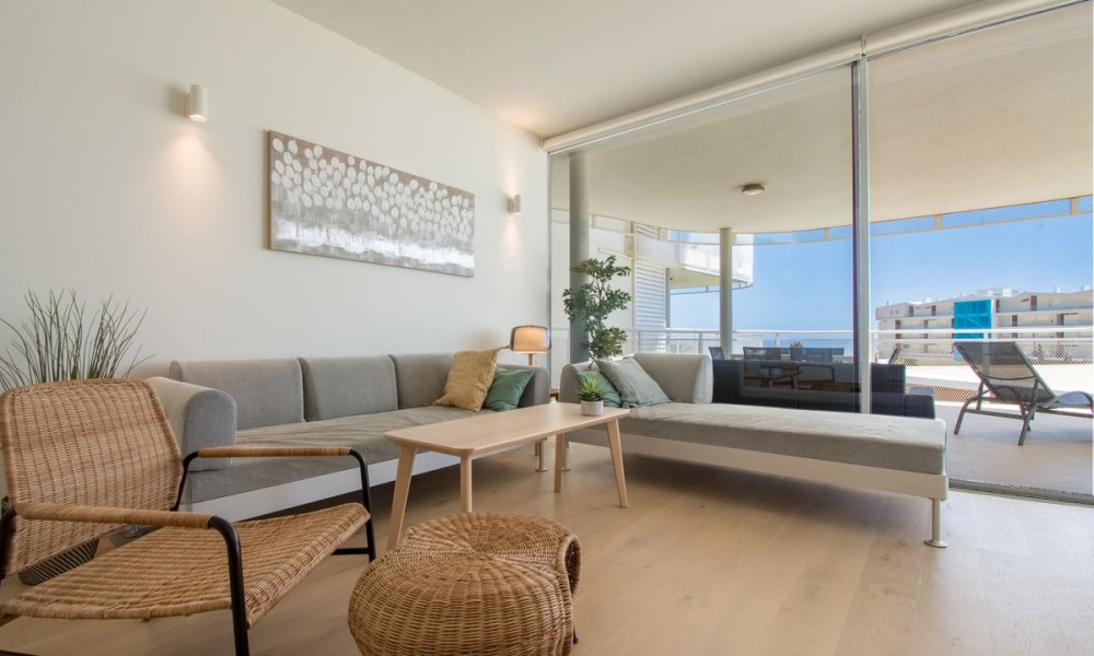 Welcome to a stunning three-bedroom apartment in the sought-after Higueron West. This exquisite property is just a 15-minute walk to the coast and an 8-minute walk to the luxurious Higueron Hotel. As an owner, you’ll have access to a range of exceptional facilities, including a state-of-the-art fitness center, wellness center, an infinity pool, and three outstanding restaurants, one of which boasts a Michelin star. For sports enthusiasts, there are 11 paddle courts, tennis courts, volleyball courts, and many more recreational activities available. Convenience is at your doorstep with the commercial area of Higueron only 1 km away, featuring a Carrefour for all your grocery needs, a pharmacy, and a newspaper shop. The beach club, open 365 days a year, offers restaurants, a pool, and beachside beds where you can relax and soak up the Mediterranean atmosphere. A beach shuttle service, running every 30 minutes, connects these fantastic facilities and stops conveniently near the apartment.Upon entering the apartment, you’ll be greeted by a large open-plan lounge and dining room that opens onto a spacious 46m² semi-circular terrace, offering breathtaking coastal views.