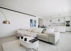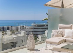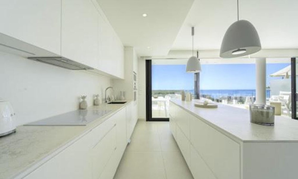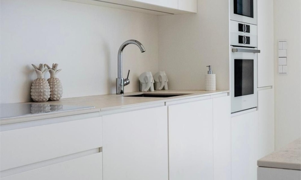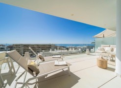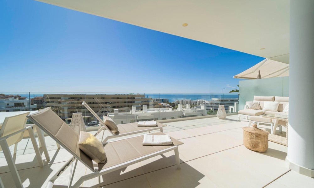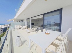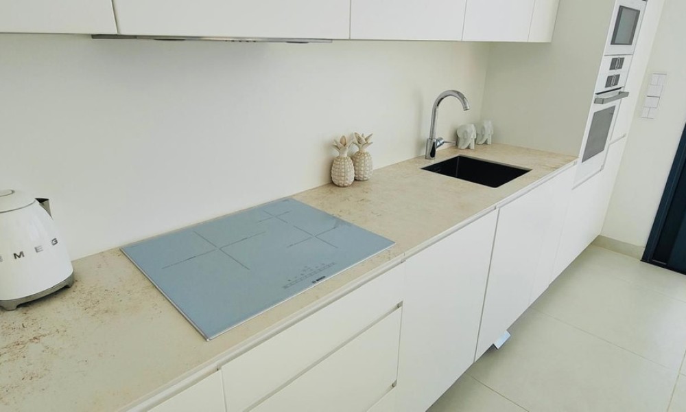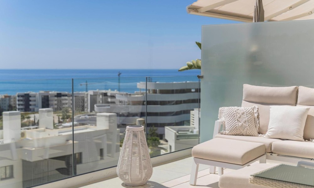 This contemporary apartment features two bedrooms and two bathrooms, including an en suite with underfloor heating. The interior transitions to a large terrace designed for year-round outdoor use. The property includes two private parking spaces equipped with electric vehicle chargers and a dedicated storage room.The communal infrastructure provides two infinity pools and dedicated co-working spaces. Residents have access to a sports club containing a gym, personal trainers, a heated 25-meter pool, and courts for padel, tennis, and beach volleyball. Additional fitness options include group classes, Pilates, and organized activities for children.