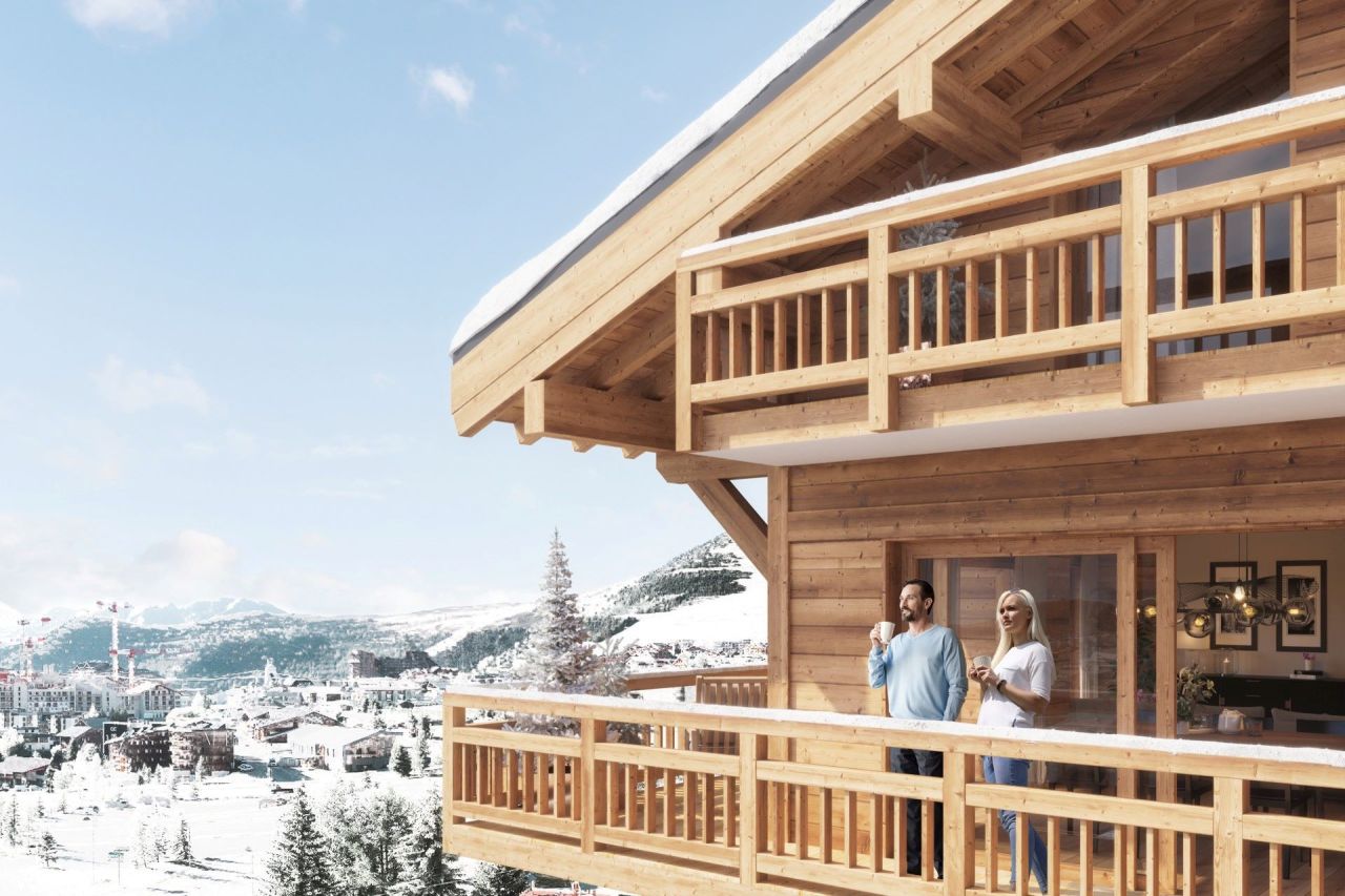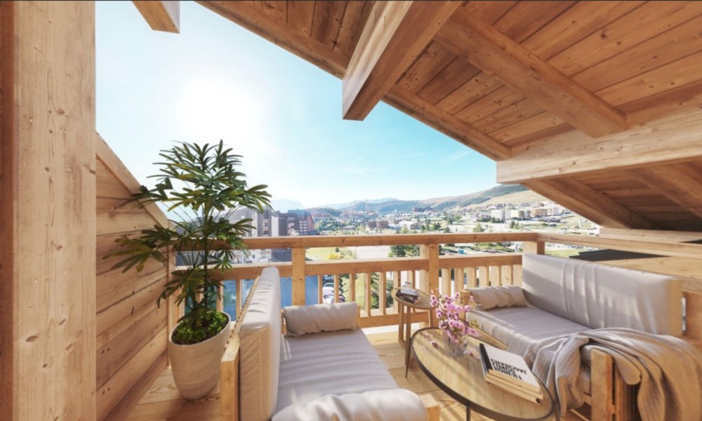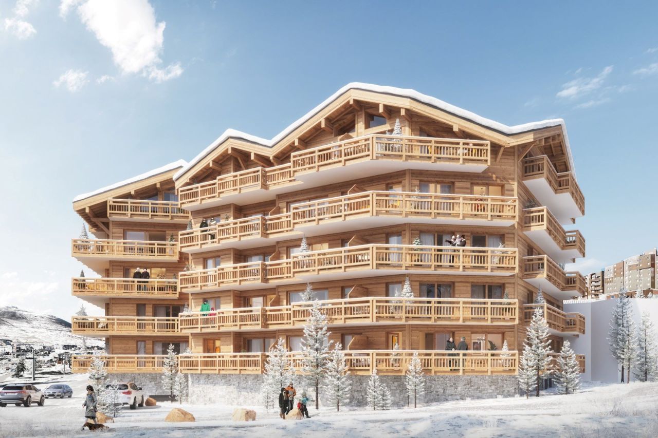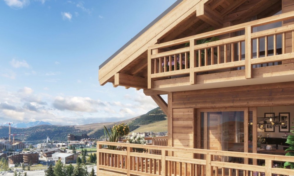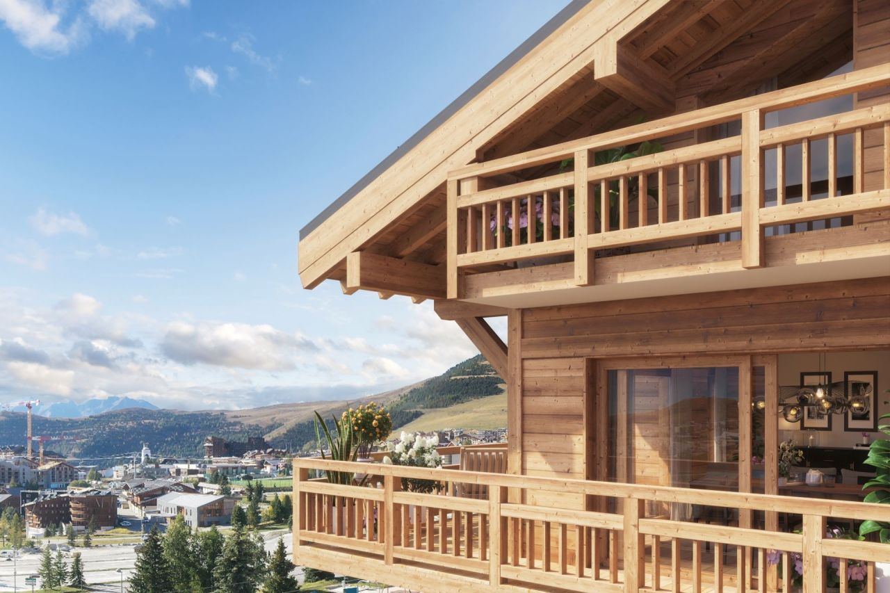 In a fantastic position just 100m from the slopes and golf course of this outstanding high altitude, dual season resort of Alpe d’Huez with 250km of skiing to 3300m and both a road and mountain bike haven in summer, the 3 bedroom (2 double + cabine – bunk bedroom) off plan apartments without any rental obligation will offer surfaces of 74 – 92m2 and private balconies of 5 – 12m2.Comprising 24 units from 1 – 5 bedrooms, each with South facing open views of the mountains, access to this wonderful ski domain could not be simpler, via the Bergers snow front a few steps away.With a delivery date of quarter 2, 2025, shops, restaurants bars and supermarket can all be found within 200m of the chalet style residence. The last project to be exempt from rental obligation, exteriors will be finished in larch wood and natural stone.