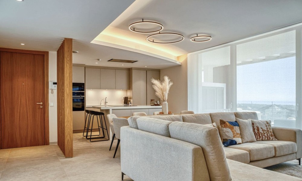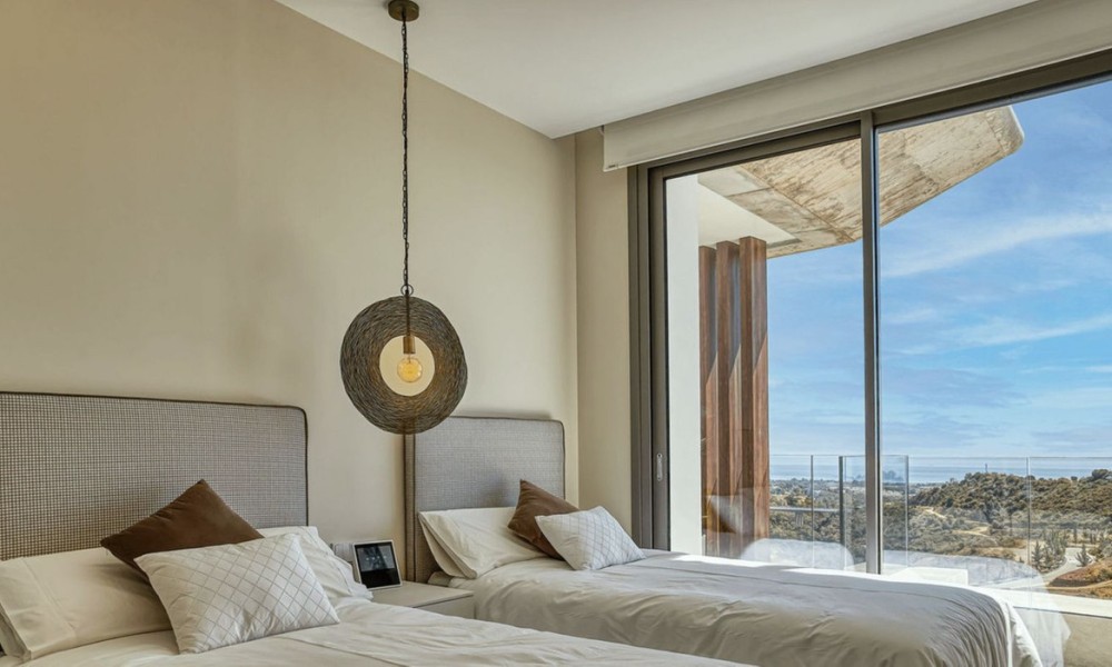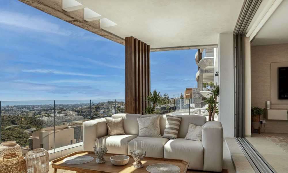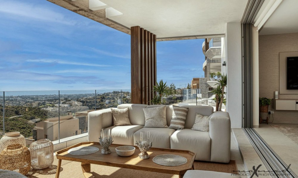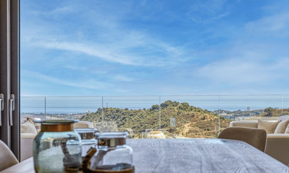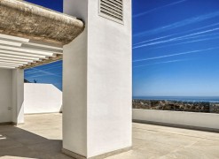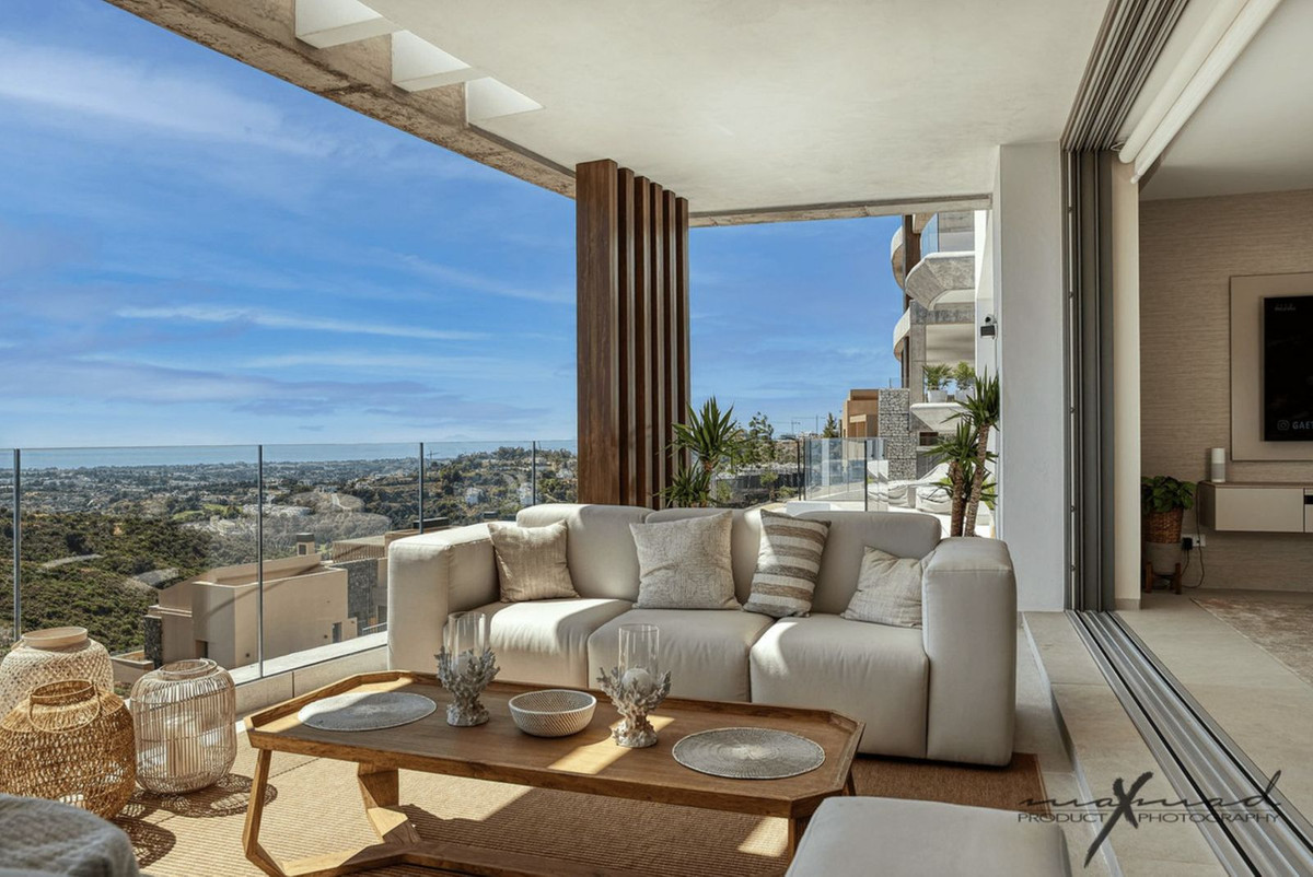 The most stunning penthouse with panormic views in the exclusive Real de la Quinta and the most recent construction Quercus.Real de la quinta is located in the hills of Benahavis. A gated resort with soon to come; a lake, boutique hotel, restaurant ,golf, state of the art gym and much more.This high quality elegant and modern 3 bedroom apartment is on one level. The kitchen opens up to the living and all the bedrooms have access and views to the sea and the mountains.