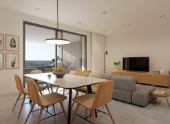 The apartments are currently being constructed and are scheduled to be completed by Spring 2025. They are spread across three floors and boast a sleek and contemporary design with a strong emphasis on indoor-outdoor living, featuring large terraces.Inside, the apartments have open plan living areas with modern kitchens equipped with integrated appliances. The bedrooms come with built-in wardrobes, and the bathrooms are finished with a modern contemporary touch.Every unit includes spacious balconies and comes fully equipped with various amenities, such as air conditioning, underfloor heating, solar panels for hot water, Smart Home Systems, high-speed Fibre internet, and double glazed windows with electric roller blinds.