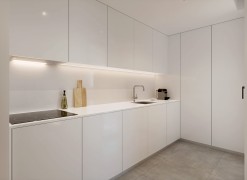 The apartments are also designed to have an energy rating of A+.Parking is secure in an underground garage, and the surrounding grounds will be beautifully landscaped with communal gardens, a sun terrace, and an outdoor pool. Residents can also enjoy the convenience of a fully equipped gym and sauna within the complex.These apartments are ideally located, being only a 5-minute walk from Porto de Mos Beach. They are renowned for their high quality, clean contemporary design, and exceptional capital appreciation rating, making them highly sought-after. Due to their popularity, they are selling quickly, so reserving a unit sooner rather than later is advisable.First floor apartments price from 595,000€.