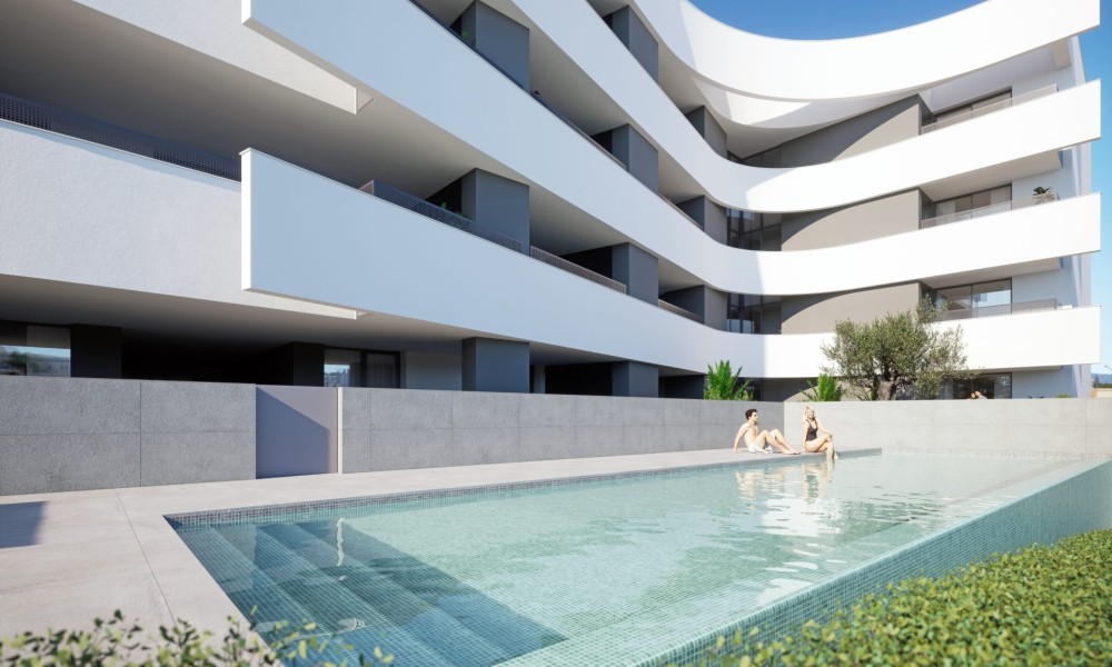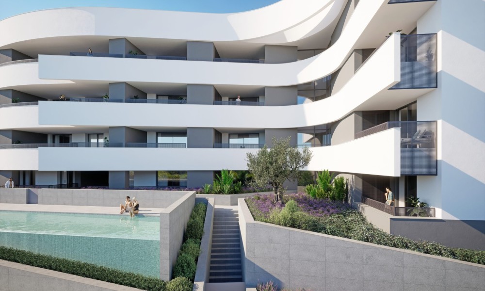 The apartments are also designed to have an energy rating of A+.Parking is secure in an underground garage, and the surrounding grounds will be beautifully landscaped with communal gardens, a sun terrace, and an outdoor pool. Residents can also enjoy the convenience of a fully equipped gym and sauna within the complex.These apartments are ideally located, being only a 5-minute walk from Porto de Mos Beach. They are renowned for their high quality, clean contemporary design, and exceptional capital appreciation rating, making them highly sought-after. Due to their popularity, they are selling quickly, so reserving a unit sooner rather than later is advisable.Second floor apartments price from 615,000€.