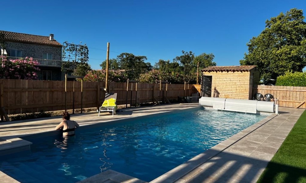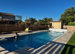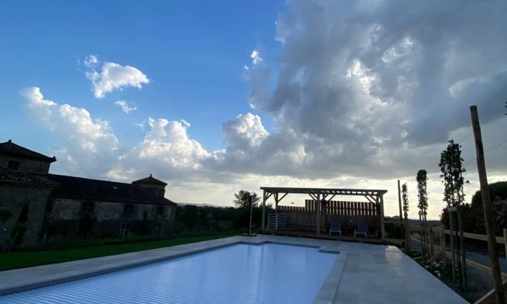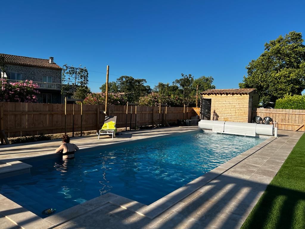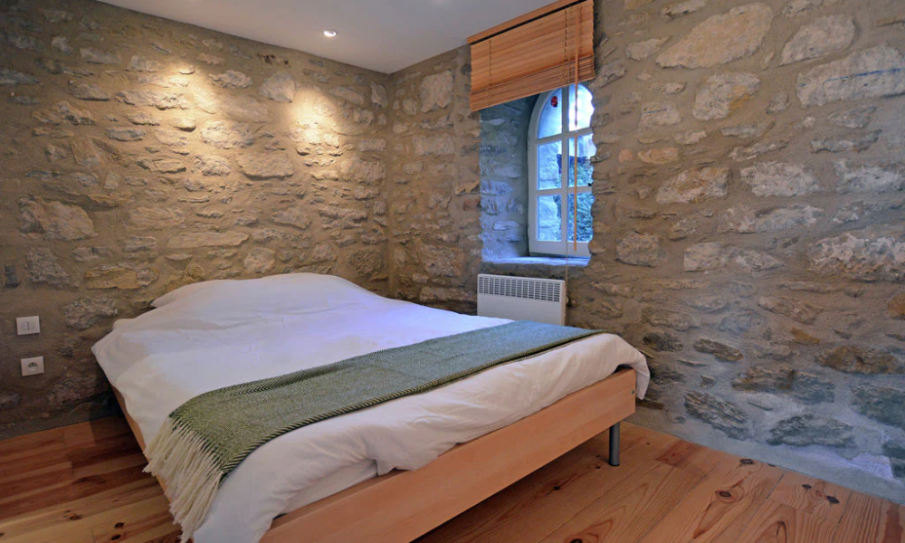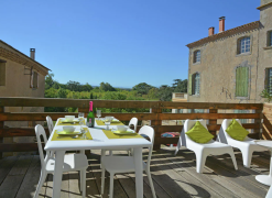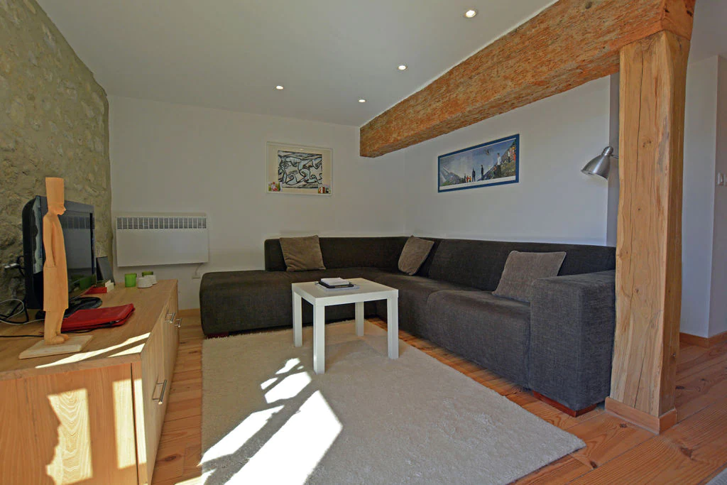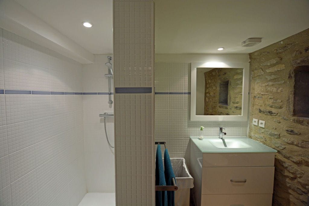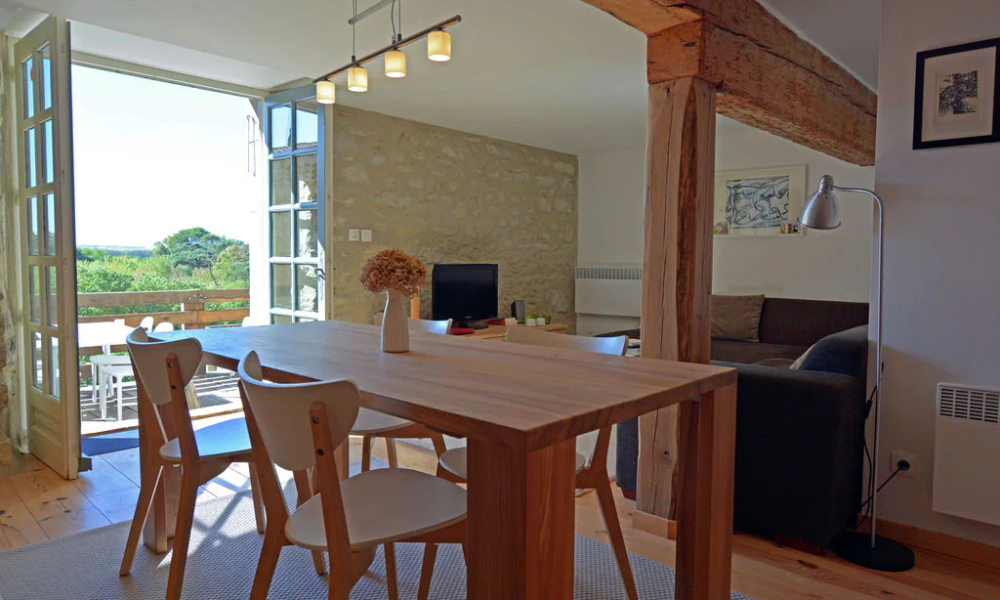 Apartment in castle with large terrace and swimming pool The apartment is located in an old castle Le Puget near the Canal Du Midi in Alzonne near Carcassonne in the Languedoc region. The thick stone walls and centuries-old wooden beams give it a unique character. The apartment was created in 2011 in the old barns of the castle and combines history with modern comfort. The kitchen, dining and sitting area are open, which increases the feeling of space and open onto the south-facing terrace (3.5 x 8m) with spectacular views of the Pyrenees. The kitchen of solid elm wood with marble worktop is fully equipped with built-in hob, extractor hood, oven, fridge-freezer and dishwasher. There are two bedrooms, each with attached bathroom with walk-in shower.