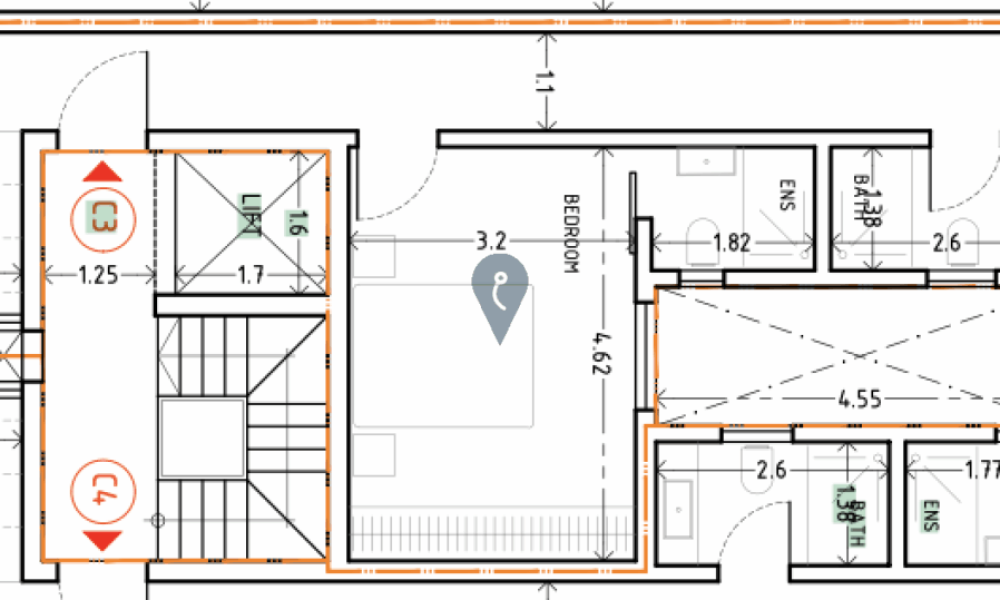 It comprises two double bedrooms, including a master with an ensuite, a main guest bathroom, and a rear balcony, ensuring plenty of natural light and ventilation throughout.