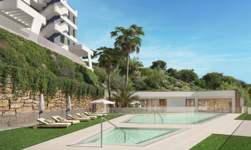 Tropical-Inspired Luxury Living – la Cala de Mijas, Costa del SolExperience the elegance of a tropical residence in this exclusive development, where water and lush vegetation take center stage and outdoor spaces are seamlessly integrated into daily life.Perfectly located in Mijas, the community offers resort-style amenities including a swimming pool, fully equipped gym, and landscaped gardens — all designed to let you enjoy the wonderful climate and relaxed lifestyle of the Costa del Sol.Architectural DesignInspired by the sophisticated style of Brazilian resorts, this project reimagines it into an avant-garde residential complex with clean lines, distinctive design, and a striking green façade.
