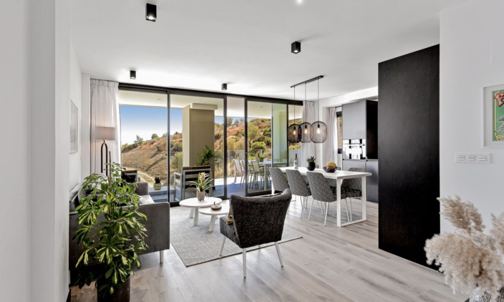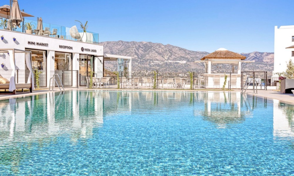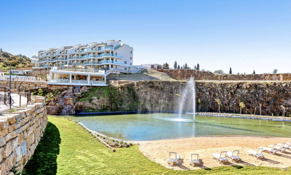 Brand New Luxury Apartments ready to move into now | MijasThese stunning brand new two and three bedroom apartments are ready to move into, perfectly located in the heart of Mijas and designed to offer a five star lifestyle. Surrounded by beautifully landscaped gardens and panoramic views that range from the mountains to the coastline, the development is unlike any other in the area. Residents enjoy exceptional onsite facilities including a restaurant, supermarket, wellness area with sauna and fitness suite, heated swimming pool, lagoon, concierge service and children’s activities, creating a true resort-style community.Each apartment is finished to a high modern standard, with fully fitted kitchens, air conditioning throughout, private storage room and a private parking space in the garage.