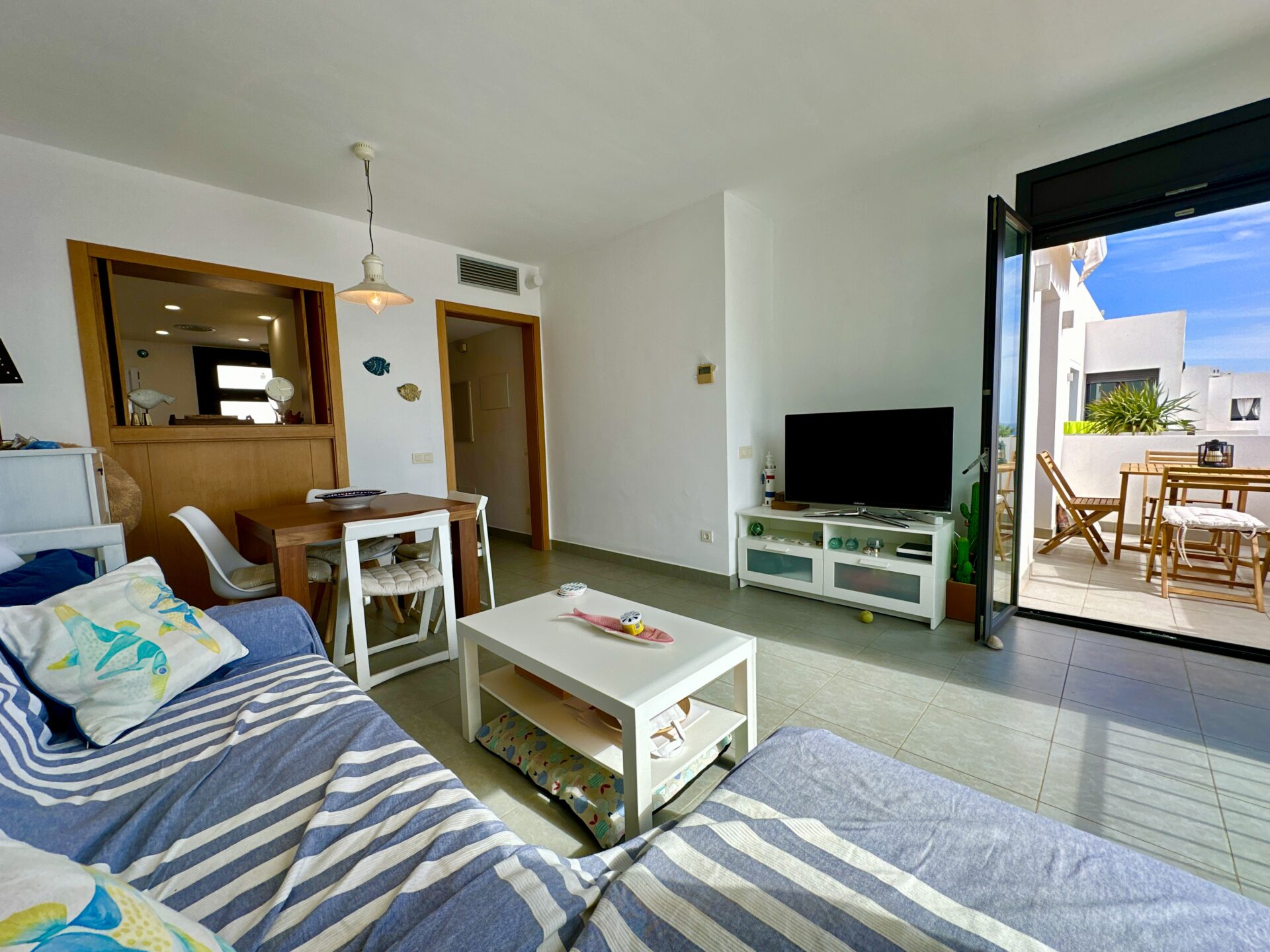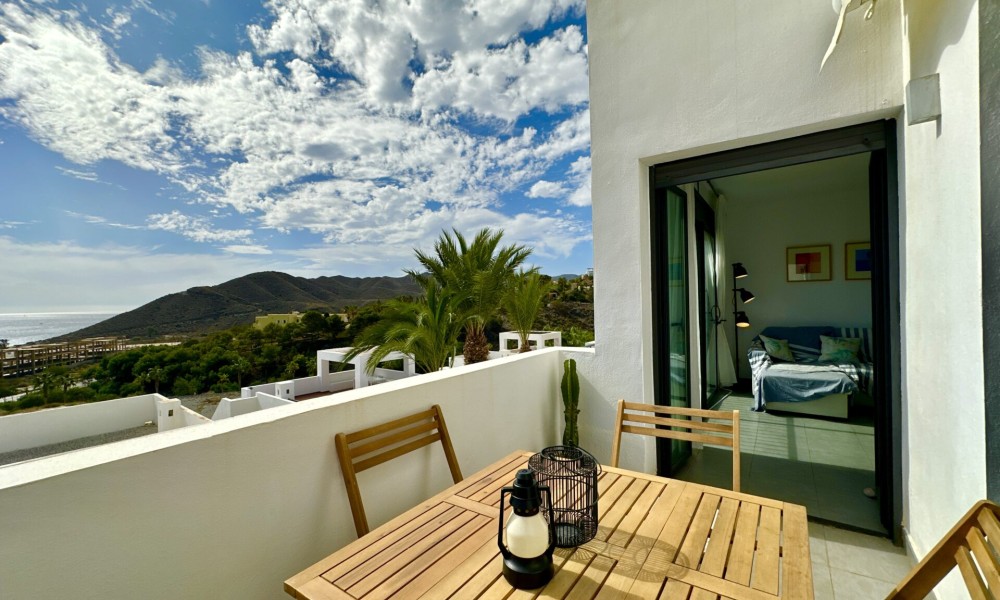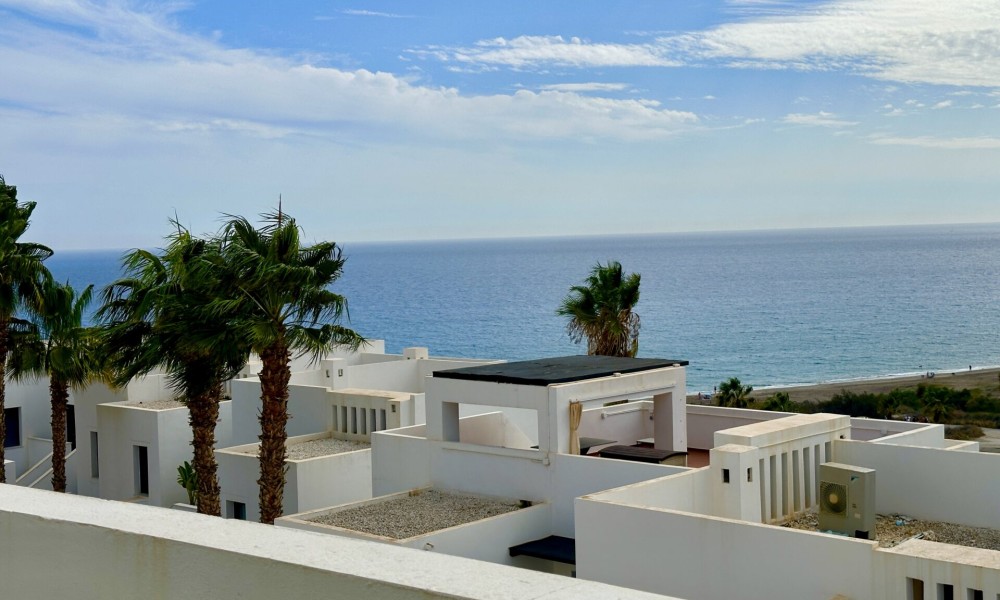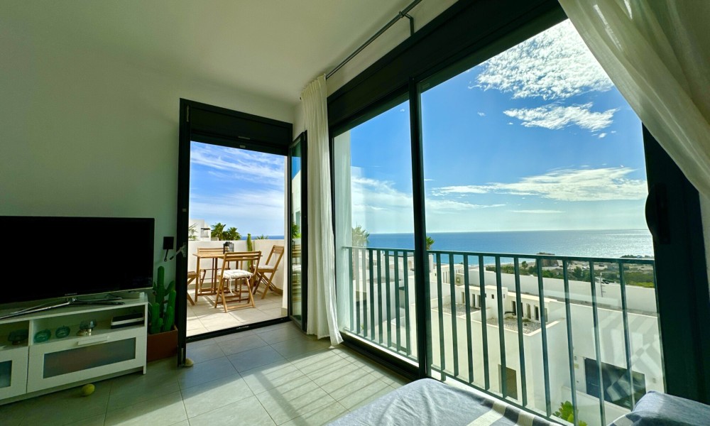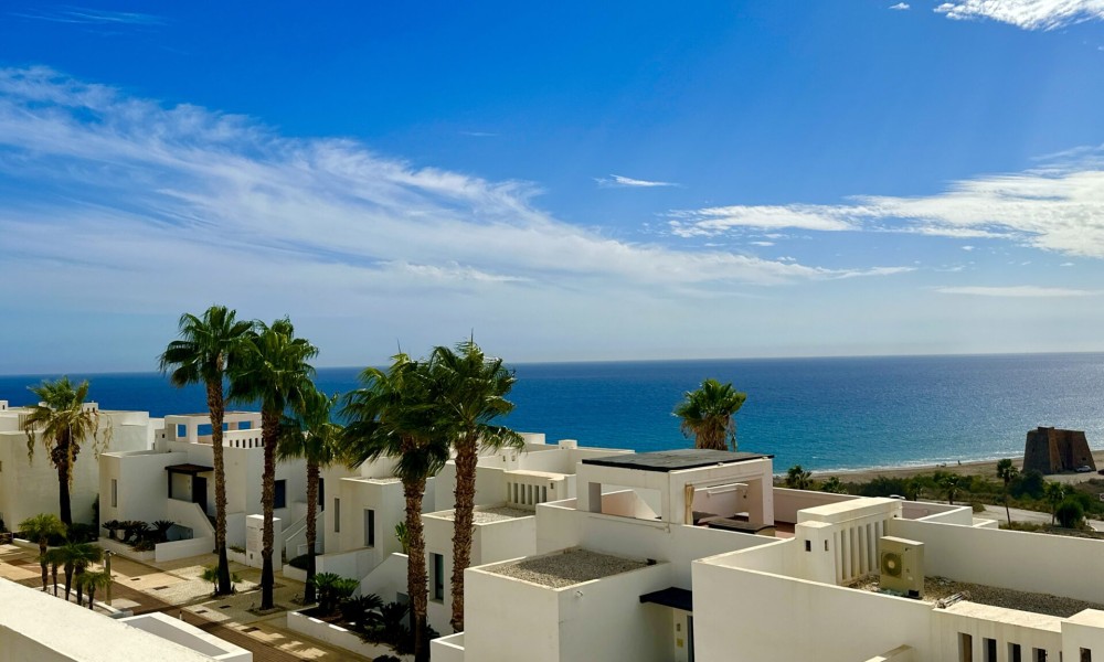 Luxury Beachfront Penthouse with Spectacular Views in Playa Macenas! Discover your dream coastal escape in this stunning 2-bedroom, 2-bathroom penthouse at the prestigious Playa Macenas Beach Resort. Nestled on the serene Almeria coast, this air-conditioned, south-facing gem offers luxury, comfort, and breathtaking sea views that will take your breath away. Property Features:– A spacious lounge that opens to a sun-drenched terrace with *wow-factor* panoramic sea and mountain views– The master bedroom boasts an en-suite bathroom with a bath, shower, bidet, and sleek modern fittings– A second double bedroom is located next to a stylish bathroom with a shower, w/c, and washbasin– Includes a separate utility room for all your laundry and storage needs ️ Outdoor Bliss:Relax and soak in the sun on your private terrace, perfect for al fresco dining and evening sunsets. With five pools to choose from, just a short walk away, this property is an ideal retreat for families and golf lovers alike. ♂️⛳ Resort Lifestyle:Located in the heart of Playa Macenas Resort, surrounded by a top-notch golf course, the penthouse offers access to fantastic amenities and lush landscapes. Just 5 minutes from the bustling town of Mojacar, you’ll enjoy the best of both worlds: peaceful beachfront living and vibrant nightlife.