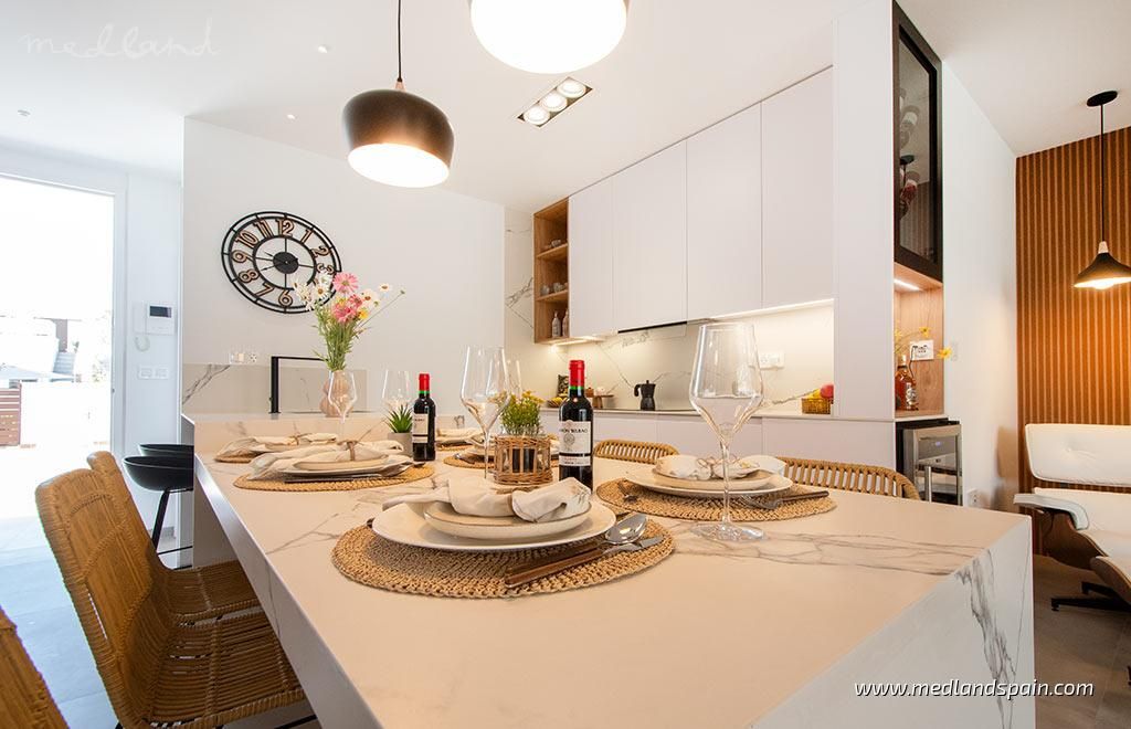 New residential complex, in an ideal location in San Pedro del Pinatar, on the Costa Cálida. The complex is within walking distance of a shopping centre, the local medical centre, as well as the city centre with a variety of shops, bars and restaurants. The fabulous beaches of the Mediterranean and the Mar Menor are both 2km from the complex, making it possible to walk or cycle to the beach. Well connected to other major areas, like Orihuela Costa, Murcia and Alicante, with the AP7.Apartments with 2 or 3 bedrooms and 2 bathrooms available in two models: ground floor with spacious terrace, or top floor with private solarium. The apartments present an open living area, combining the lounge, dining room and kitchen, and a multi-purpose area which can be used as an extension of the lounge, or as a third bedroom.