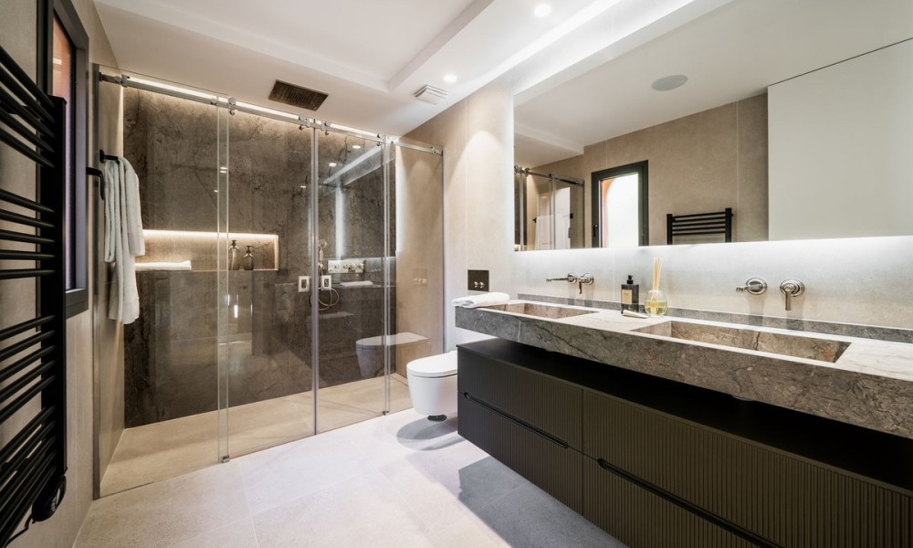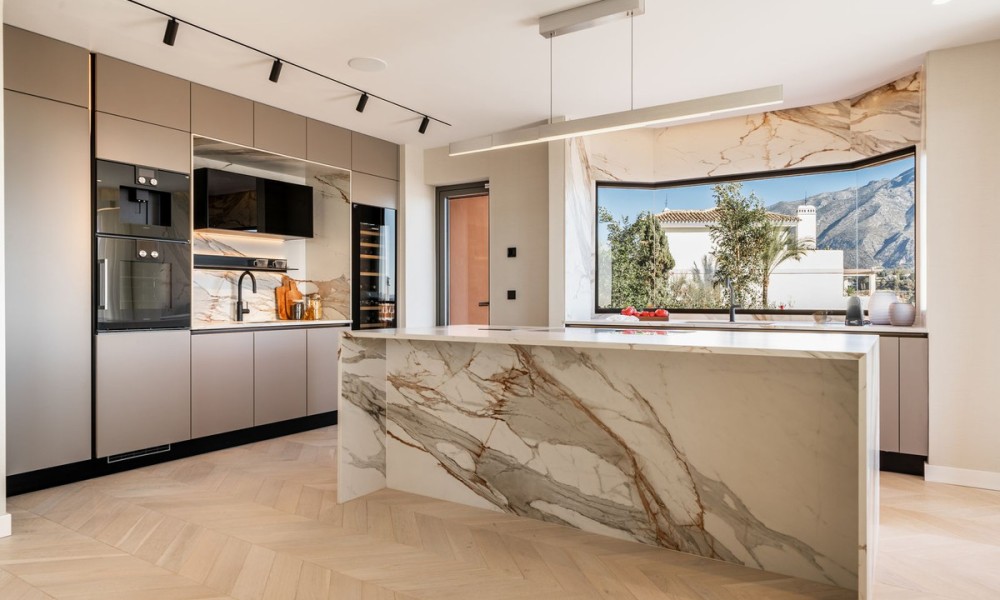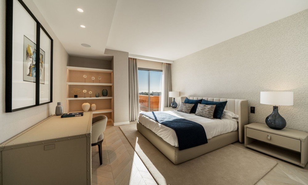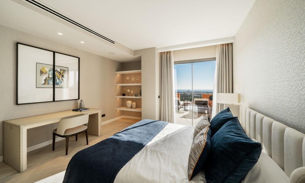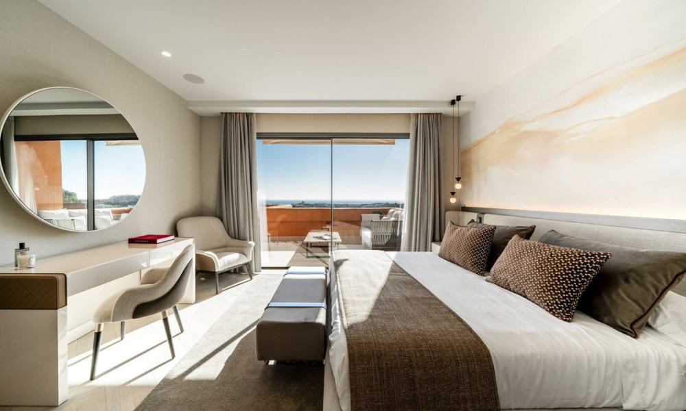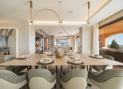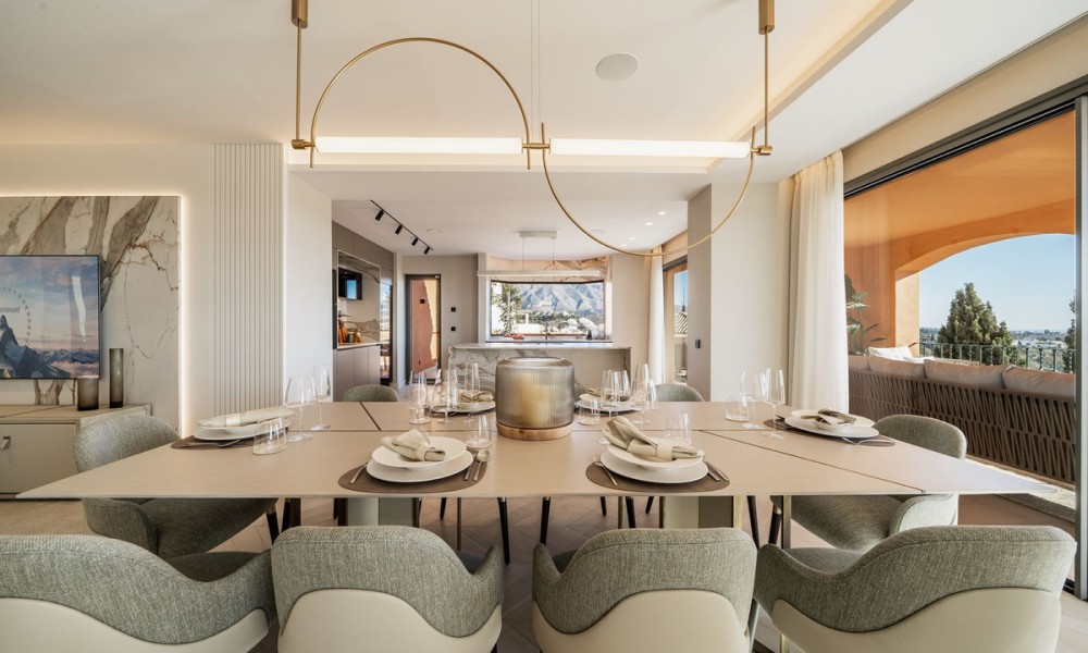 Designer furniture, Gessi taps, and underfloor heating in the bathrooms seamlessly marry simplicity with modern amenities, creating a harmonious living space. This property offers a luxurious yet practical lifestyle, strategically positioned near Nueva Andalucia’s vibrant amenities. With panoramic views, top-notch security, and sophisticated features, it promises an unparalleled living experience.