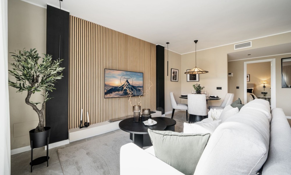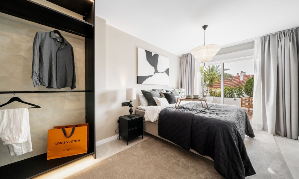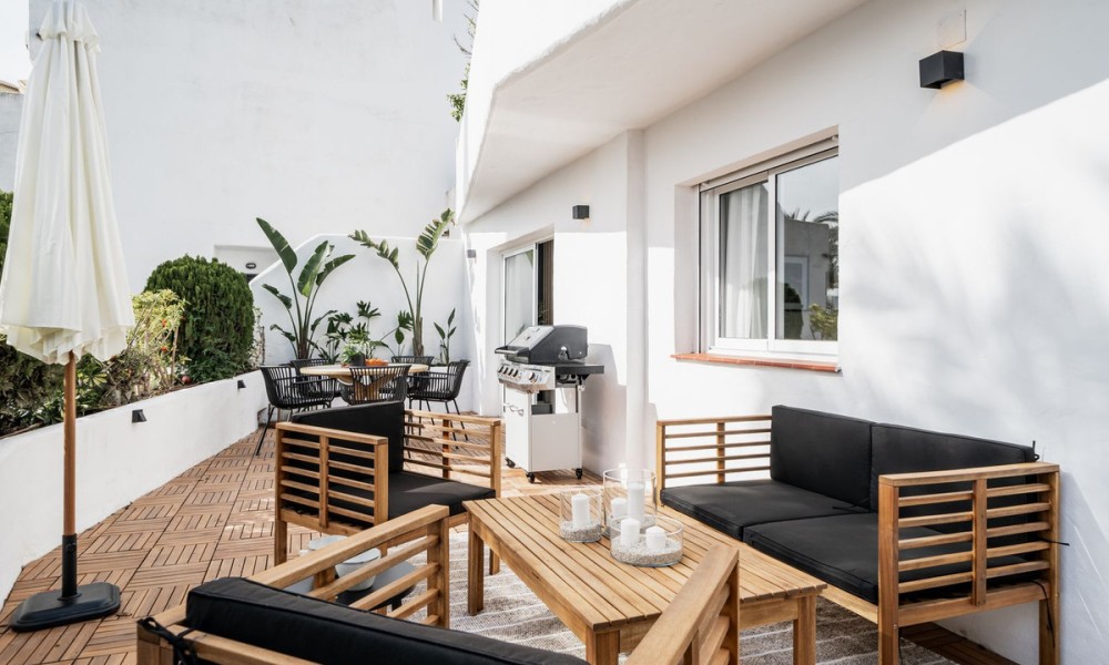 This beautiful residence features 4 bedrooms and 2 bathrooms, blending contemporary style with natural elements to create an atmosphere of tranquility and sophistication. The generous terrace offers views of La Concha mountain, and is an ideal space for hosting guests, enjoying outdoor dining and unwind. Conveniently situated within walking distance of restaurants, bars, and beach and pool clubs, and only a short drive from Marbella’s premier golf courses, this property caters to both leisure seekers and investors.