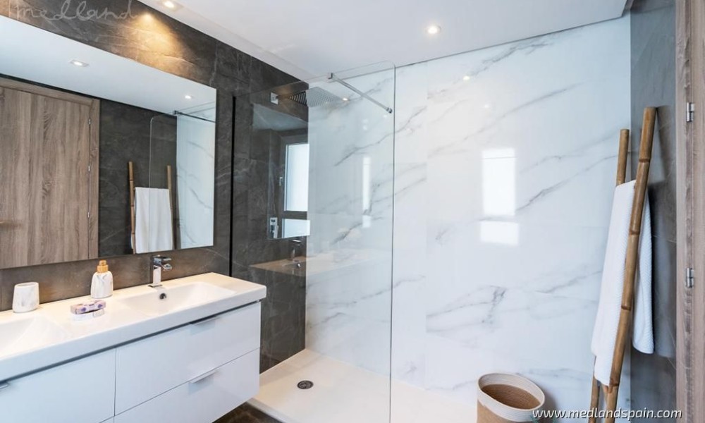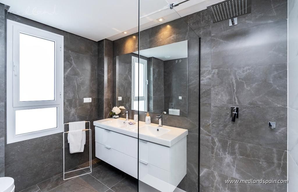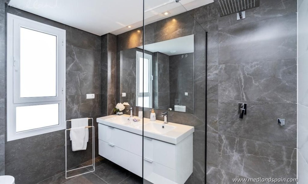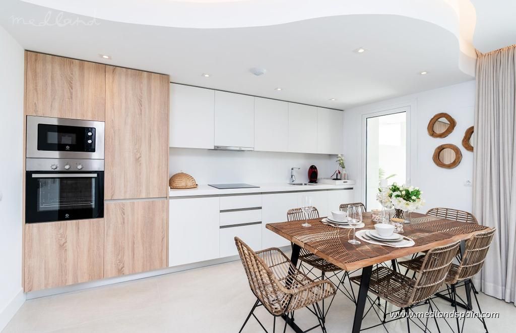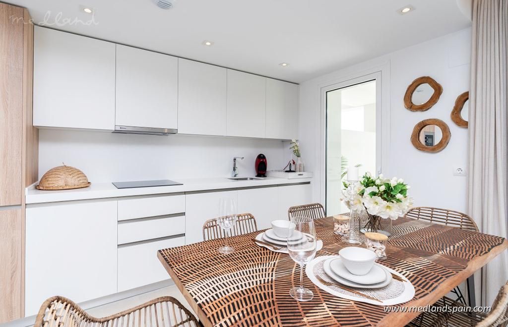 Each apartment has a spacious living room with access to the large open terrace that offers wonderful views of the golf course and the sea. The apartments are built with top quality materials, large windows, kitchens fully equipped with white goods and A/C. All apartments include a parking space and a storage room in the underground parking garage.The residential will have several community pools, garden areas with pedestrian paths, and a large leisure area approx. the size of three football fields.