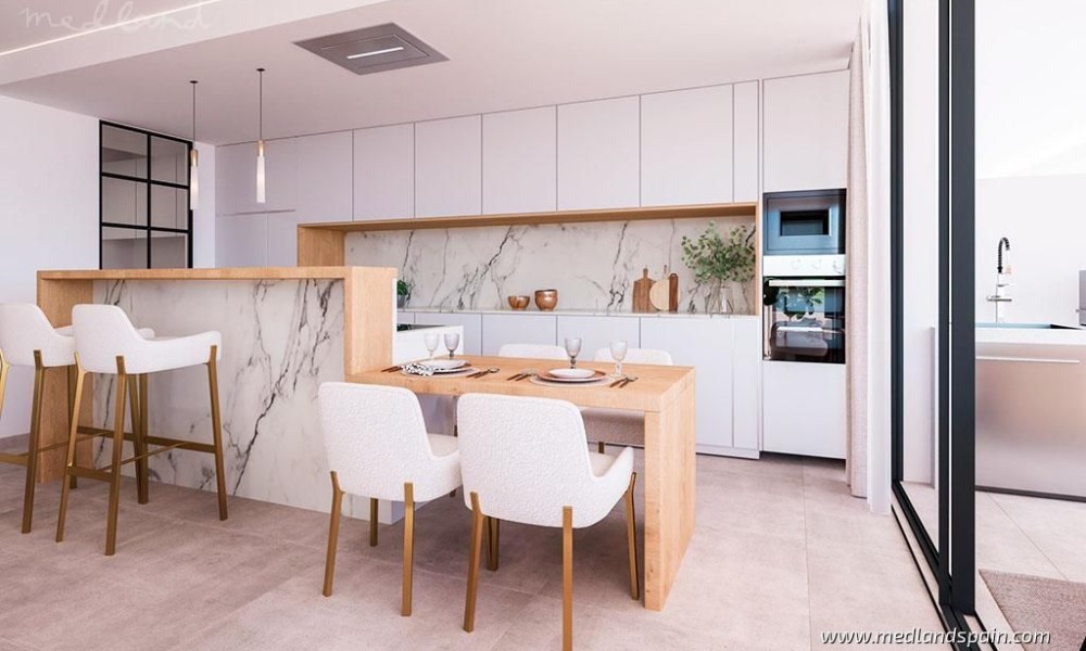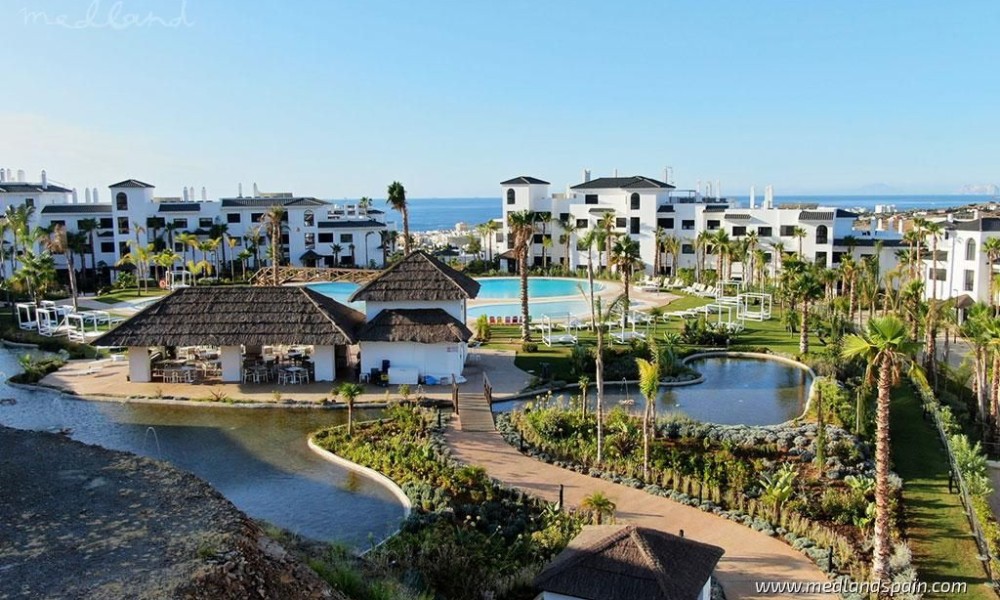 There are various extras included in the apartments like, ducted hot/cold air conditioning, electric blinds in the lounge and bedrooms, a storage room, and parking.This impressive resort has been built to resemble a village, with a shopping area, restaurants and snack bars, community parking areas with charging stations for electric cars, and spaces to park a buggy and bicycles. For those residents who enjoy keeping active, the resort offers a large sports club, with indoor and outdoor facilities, like fitness rooms and a gym, paddle and tennis courts, as well as hiking routes into the mountains. For those residents looking to relax, there are tropical gardens with walkways, four beach-style pools, for adults and children, with areas for sun loungers, a children’s play area, and restrooms and changing rooms. The resort is also gated, providing 24 hr security for its residence, with security control at the entrance.