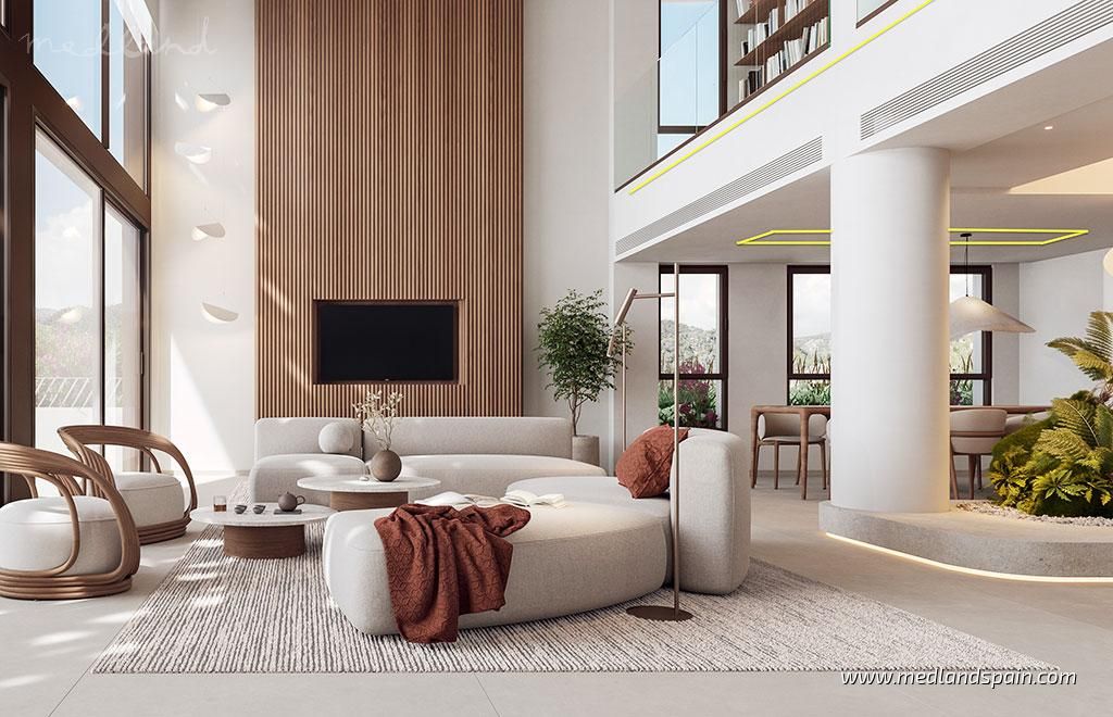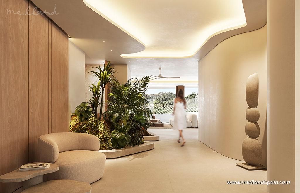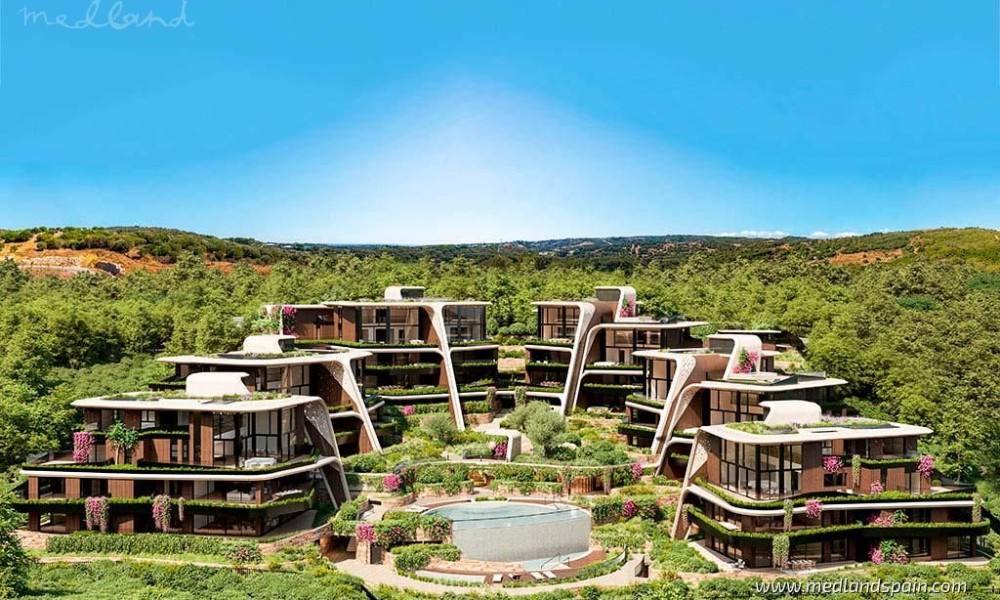 Exceptional apartment complex, inspired and surrounded by nature, in a prestigious area of Sotogrande. Also known as “Little Venice”, Sotogrande is an exclusive area in the province of Cadíz, with a wide selection services and amenities, as well as designer stores, art galleries, trendy restaurants, and the fantastic marina, where boats of all sizes are berthed. The area also boasts 185km of coastline, with unspoiled, white-sand beaches, as well as 6 prestigious golf courses within a 10-minute radius. The excellent road network makes it easy to reach Malaga, and its airport, in just over an hour, and Gibraltar international airport within 30 minutes.This complex has been designed with organic shapes and natural colours, to blend into its surroundings. There are six buildings comprising apartments with 3 and 4 bedrooms, and are available in three models: ground floor apartments with a private garden, mid floor apartments with a spacious terrace, and penthouses on two floors. The exclusive design, with floor-to-ceiling windows, creates bright and spacious interiors, taking full advantage of the more than 300 days of sunshine per year.