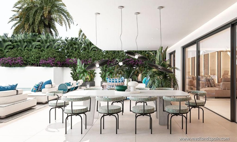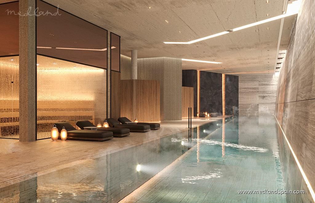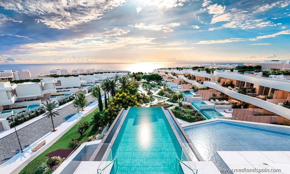 The open plan living area extends onto a terrace, where the mild climate, as well as the more than 320 days of sunshine a year, can be enjoyed. The properties include a storage unit and one or more parking spaces, depending on the model.The complex boasts high-end facilities and services for its residents to enjoy, either at the exclusive Social Club, or in the many outdoor community areas. The outdoor areas include two infinity pools with waterfalls that form ponds, landscaped gardens with spaces for relaxation and recreation, internal walkways, and countless areas with panoramic views.The exclusive Social Club includes a state-of-the-art gym, with a specialised indoor area, as well as an outdoor area with spaces for meditation, yoga, and Pilates. The impressive Spa houses a 40m swimming pool, a Turkish bath, a sauna, and areas for hydromassage, aromatherapy, and geothermal therapy. The large terrace, with an infinity pool, sun loungers, and a chill out bar, is the ideal place to relax and enjoy the excellent climate of Marbella, and the unbeatable views of the Mediterranean.
