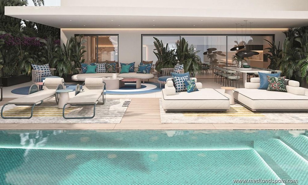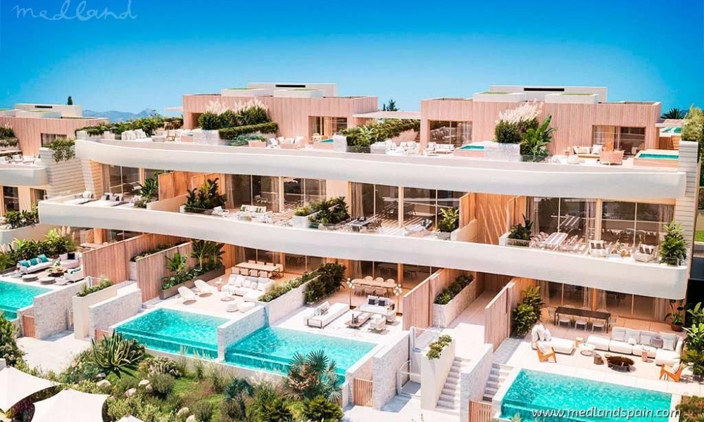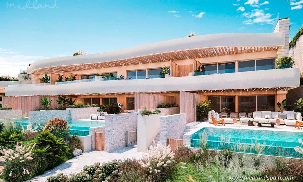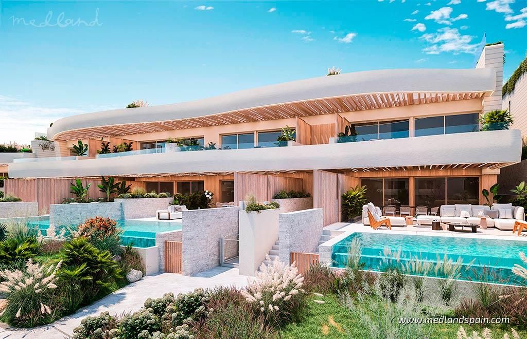 Exclusive beachfront residential complex, with apartments and semi-detached villas in Marbella. A prime location on the Costa del Sol, on one of the last available plots on the beachfront, and only 10 minutes from Marbella. All the necessary services are within walking distance, like restaurants, supermarkets, pharmacies, the hospital, and a school. An ideal area for golf enthusiasts, with various golf courses less than 10 minutes away, like the Marbella Golf Country Club and Santa Clara Golf Marbella. The AP-7 and A-7 motorways make it possible to reach Malaga International Airport in 40 minutes.The complex presents luxury properties in various models: Ground floor apartments with 2 or 3 bedrooms, a basement, and a large garden with private pool; Penthouse apartments with 3 or 4 bedrooms, and a solarium with private pool and jacuzzi; and Semi-detached villas on two floors, with 3 or 4 bedrooms, a solarium, a basement, and a garden with private pool and jacuzzi.Thanks to the incredible location, and their innovative design, all properties are ensured spectacular sea views, and bright and spacious interiors.