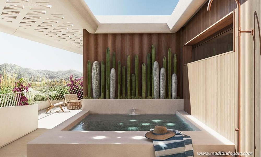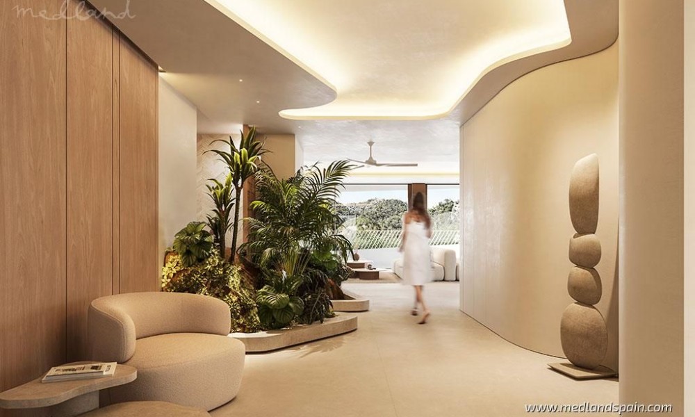 Exceptional apartment complex, inspired and surrounded by nature, in a prestigious area of Sotogrande. Also known as “Little Venice”, Sotogrande is an exclusive area in the province of Cadíz, with a wide selection services and amenities, as well as designer stores, art galleries, trendy restaurants, and the fantastic marina, where boats of all sizes are berthed. The area also boasts 185km of coastline, with unspoiled, white-sand beaches, as well as 6 prestigious golf courses within a 10-minute radius. The excellent road network makes it easy to reach Malaga, and its airport, in just over an hour, and Gibraltar international airport within 30 minutes.This complex has been designed with organic shapes and natural colours, to blend into its surroundings. There are six buildings comprising apartments with 3 and 4 bedrooms, and are available in three models: ground floor apartments with a private garden, mid floor apartments with a spacious terrace, and penthouses on two floors. The exclusive design, with floor-to-ceiling windows, creates bright and spacious interiors, taking full advantage of the more than 300 days of sunshine per year.